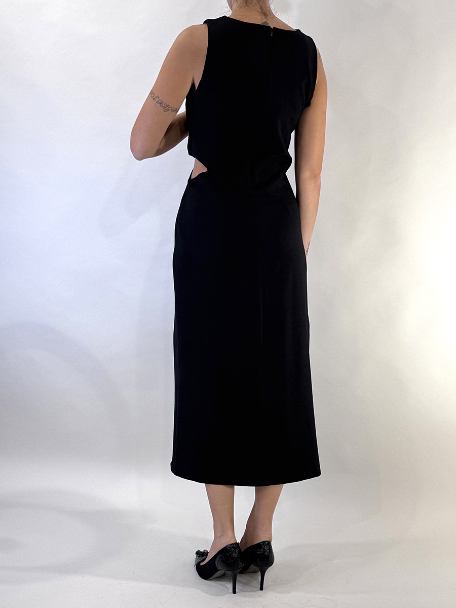 Abito minimalista ma sensuale , colore nero , modello cut out, girocollo e giromanica.