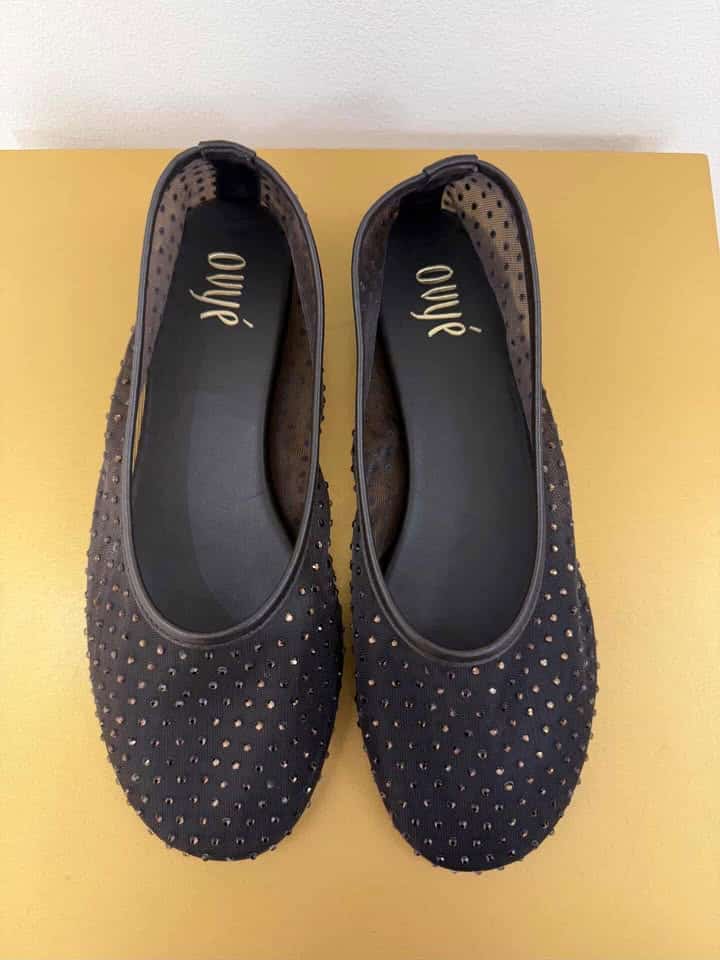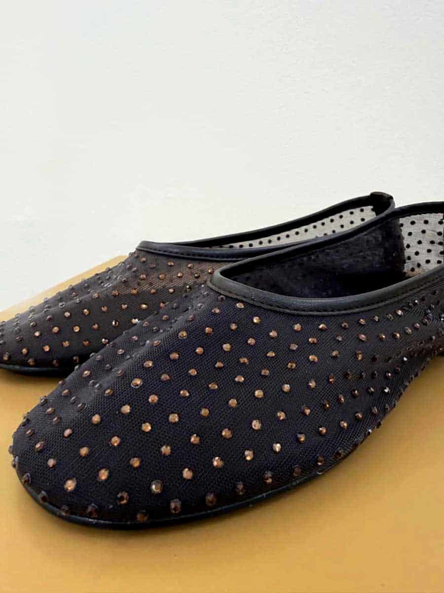 Ballerina in rete con strass, tacco 1 cm