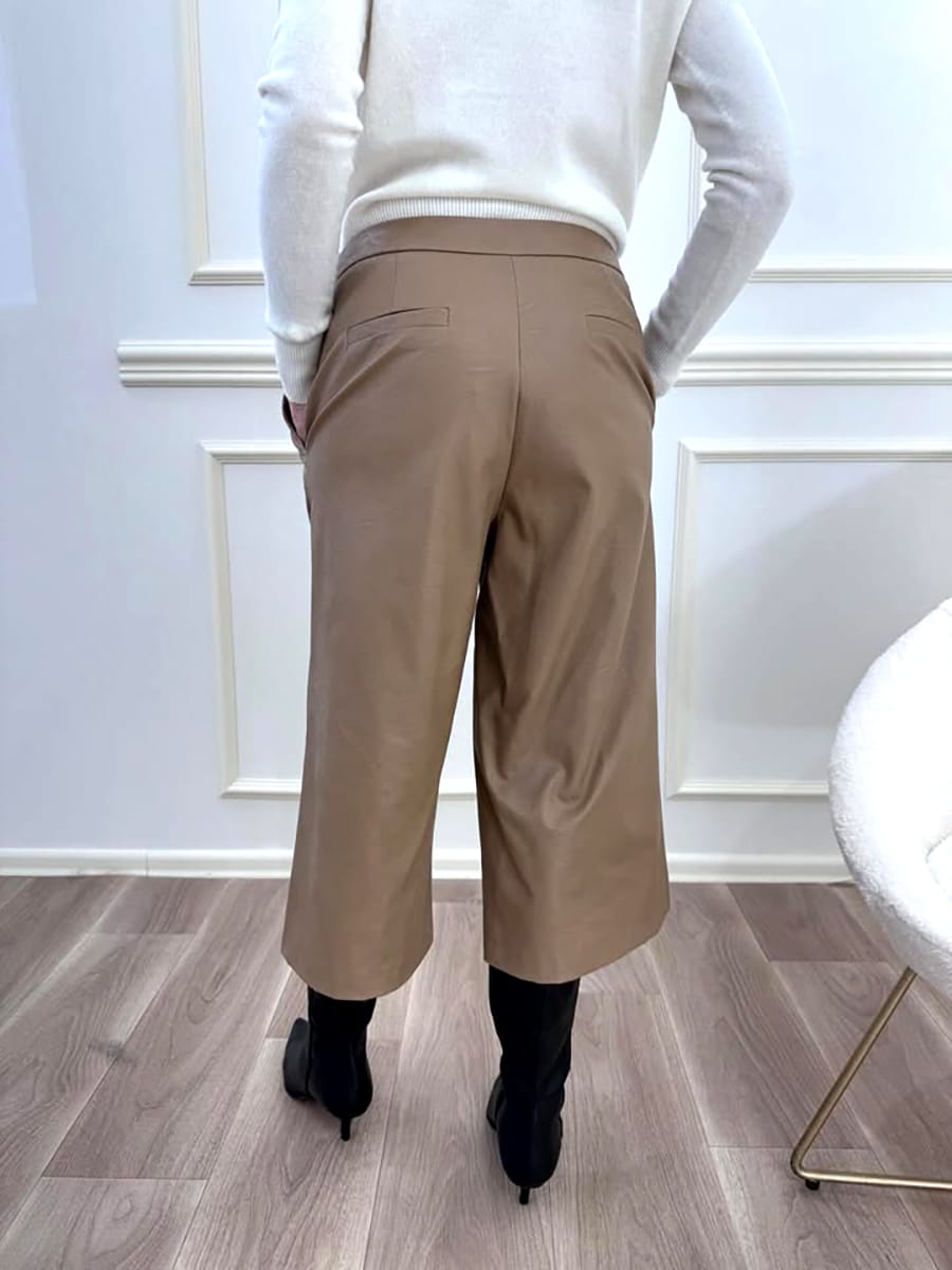 Bermuda in ecopelle colo camel ,lunghezza sotto al ginocchio, vestibilità comoda.