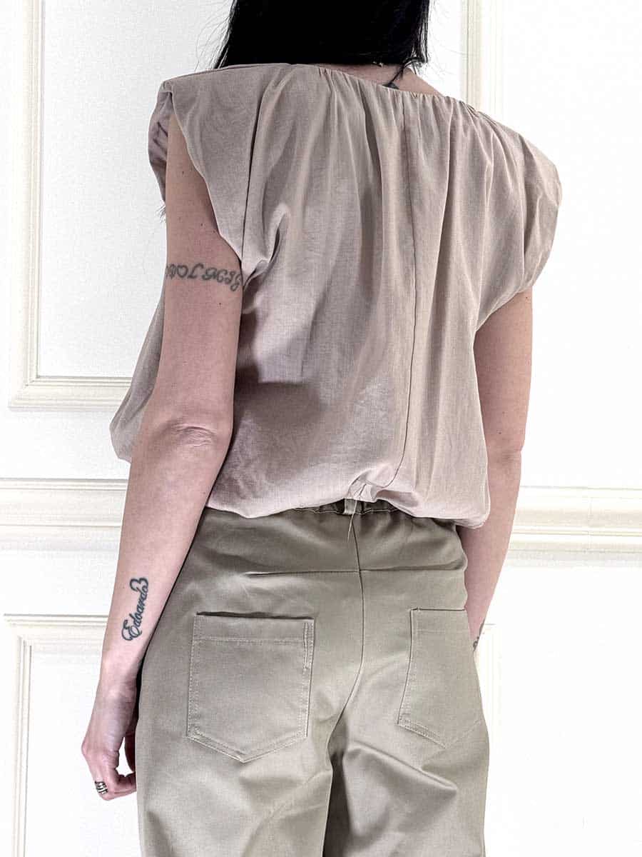 blusa in viscosa modello a palloncino, scollo a v , giromanica, elastico in fondo , capo femminile e versatile colore beige perfetta per completare con stile i vostri look casual ed eleganti.