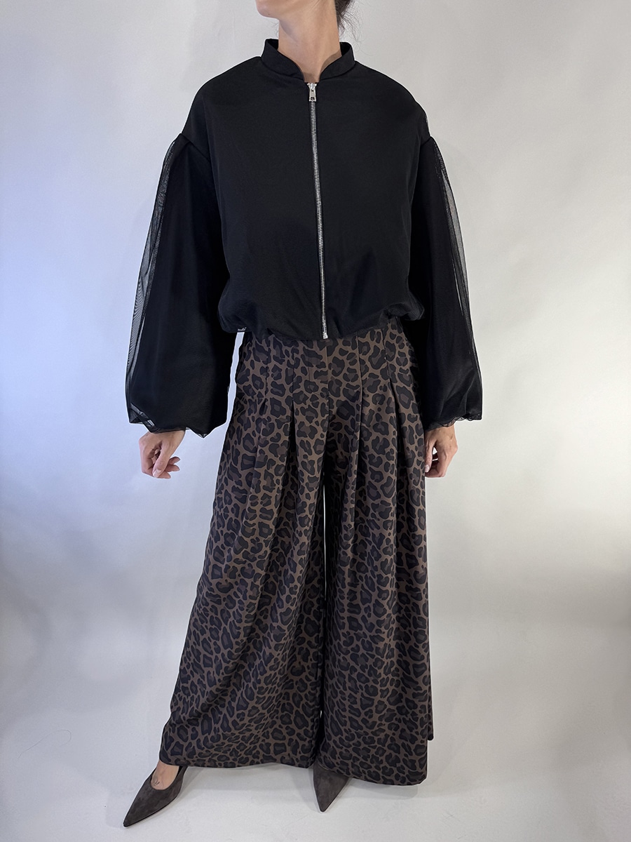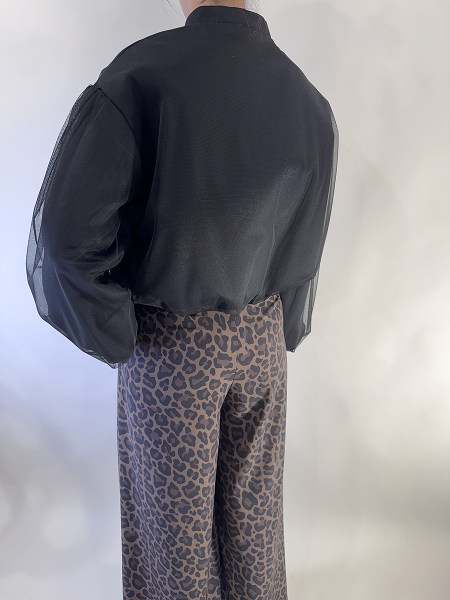Bomber colore nero , zip davanti per la chiusura. Arricciato in fondo e nelle maniche , rivestito in tulle nero.Fodera interna , fit non asciutto . Un capospalla dal design particolare , per completare con un tocco di eleganza i vostri look.