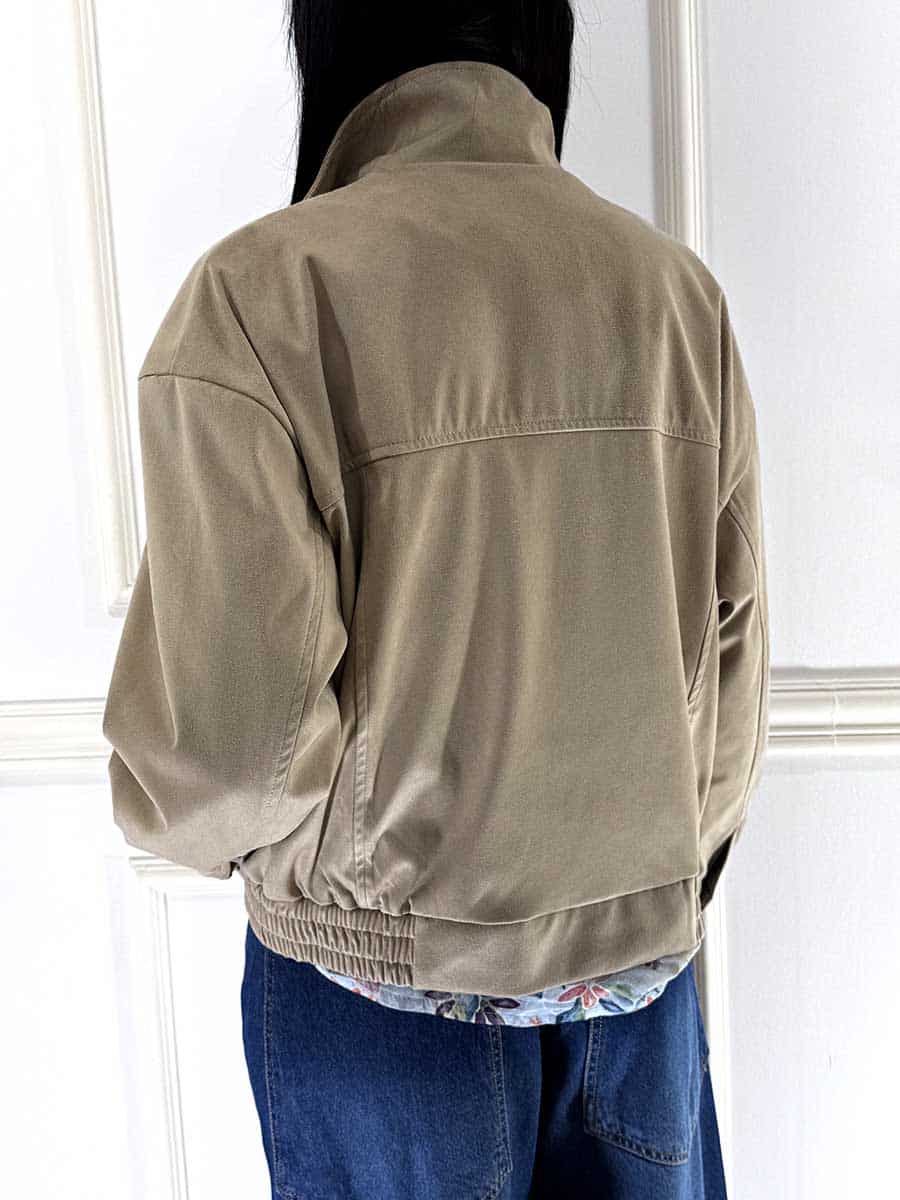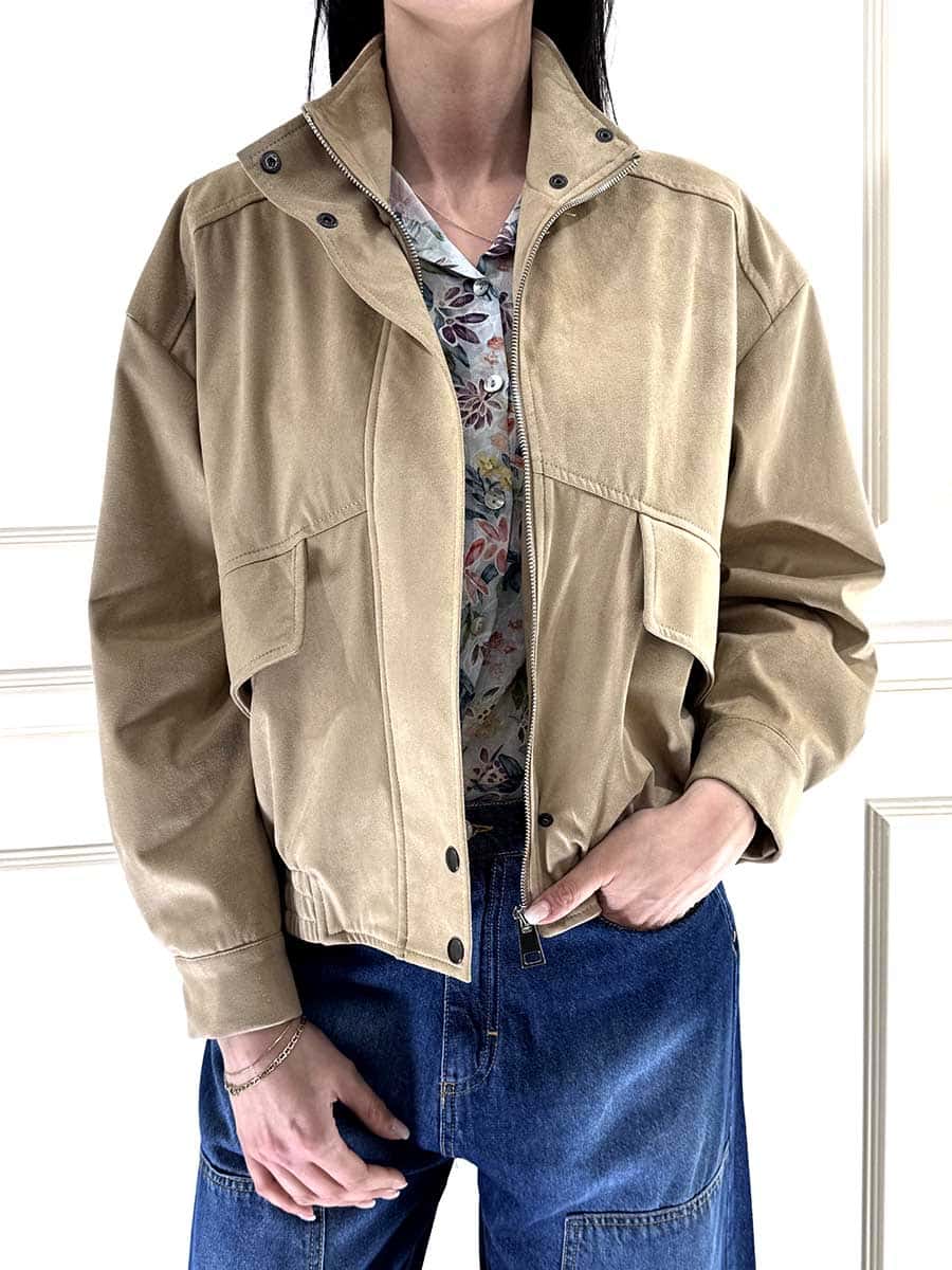 Bomber in simil suede con zip e bottoni davanti per la chiusura , vestibilità comoda, elastico in fondo e tasche laterali,fodera interna.