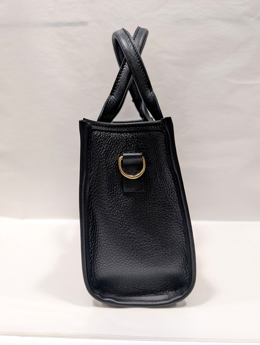 Borsa in pelle colore nero dal design moderno e strutturato.