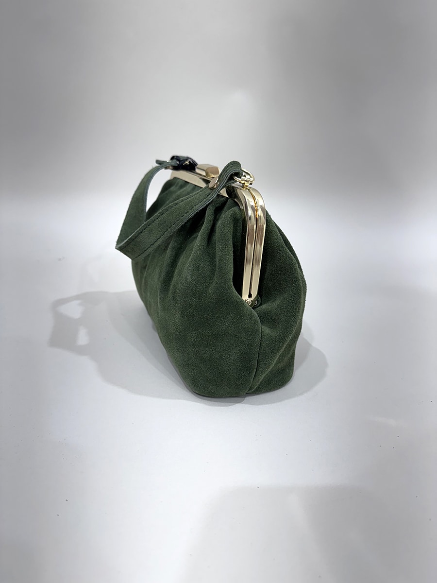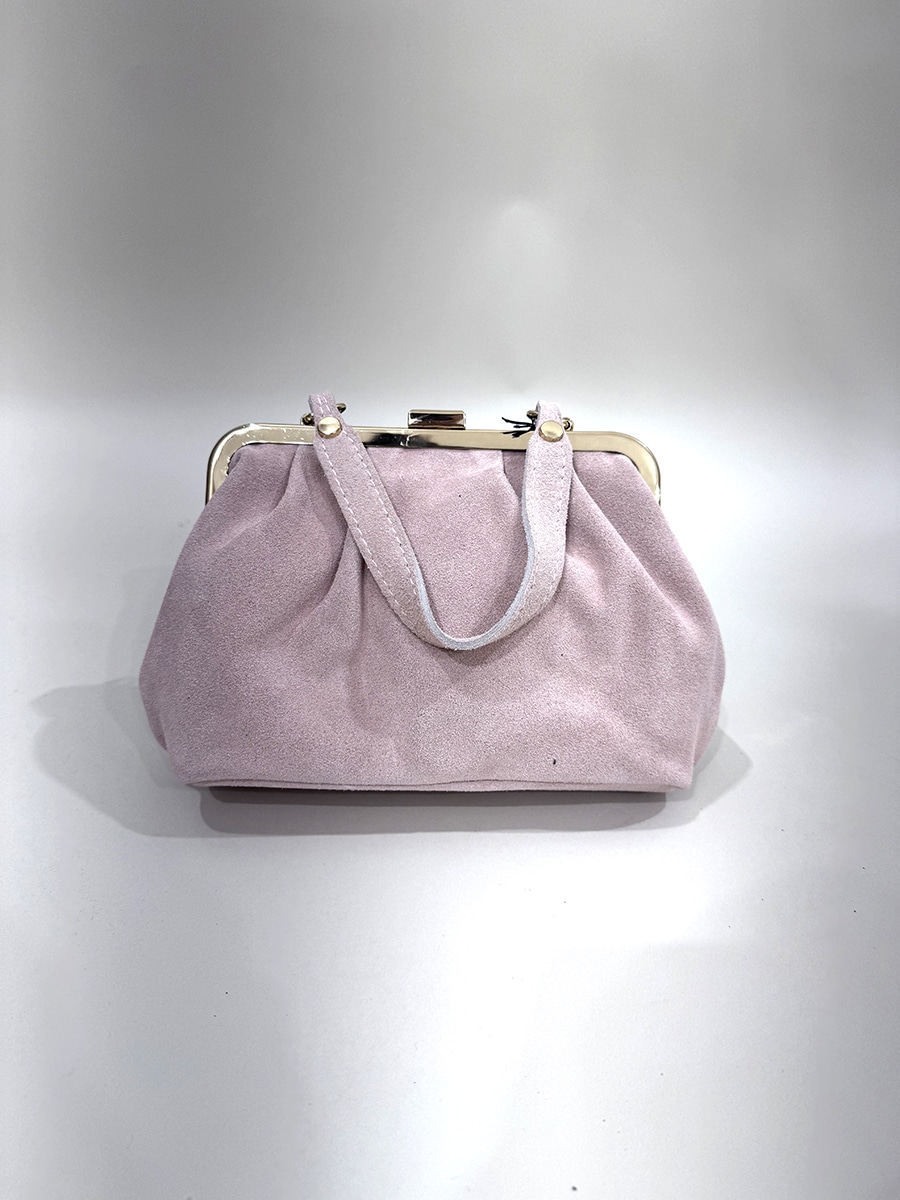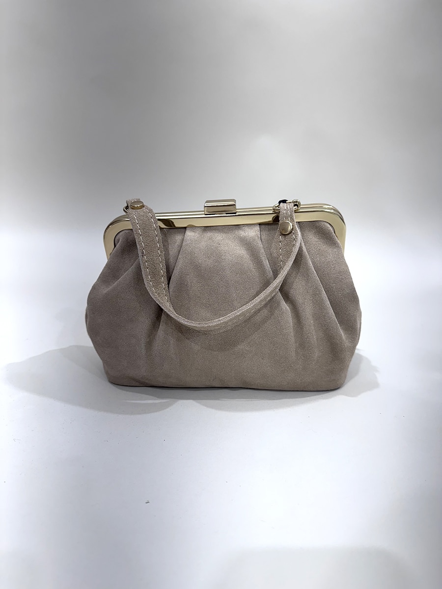 Borsa dallo stile classico e vintage. Tessuto scamosciato, neutro ed elegante. La forma è morbida e leggermente bombata.
