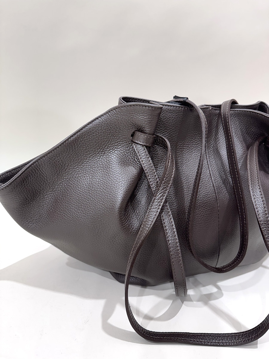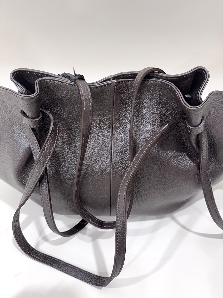 Borsa in pelle color moro . Morbida, in pelle martellata.