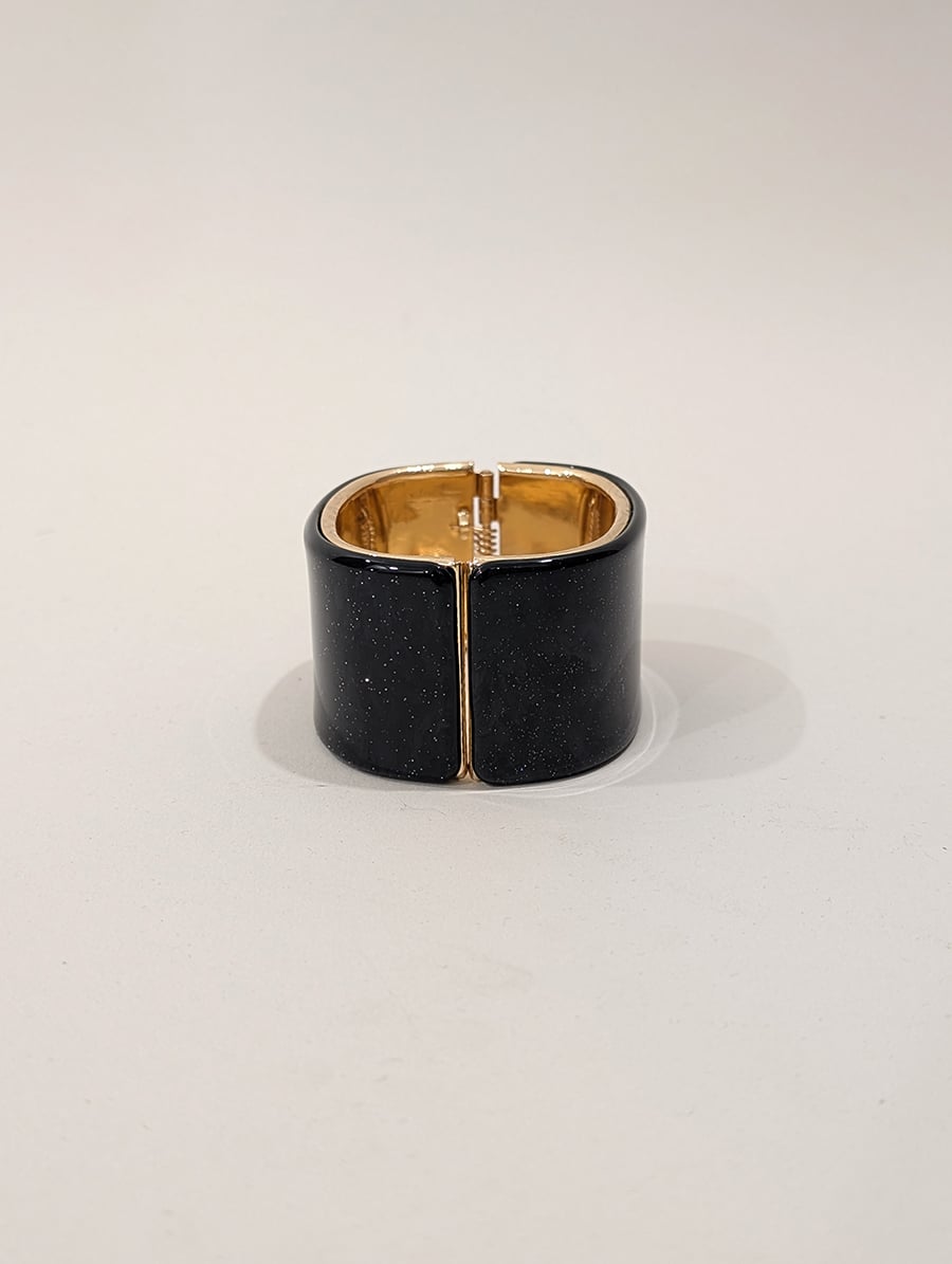 Bracciale rigido con finitura lucida effetto madreperlato, con brillantini. Accessorio elegante e audace, perfetto per valorizzare ogni look.