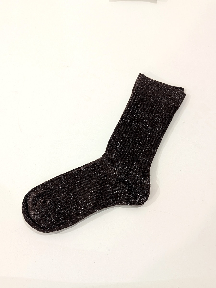 Calzini lunghi effetto lamè. Dalla texture calda e brillante, uniscono comfort e stile, perfetti per aggiungere un tocco sofisticato anche ai look più casual. Disponibile nelle varianti moro e grigio