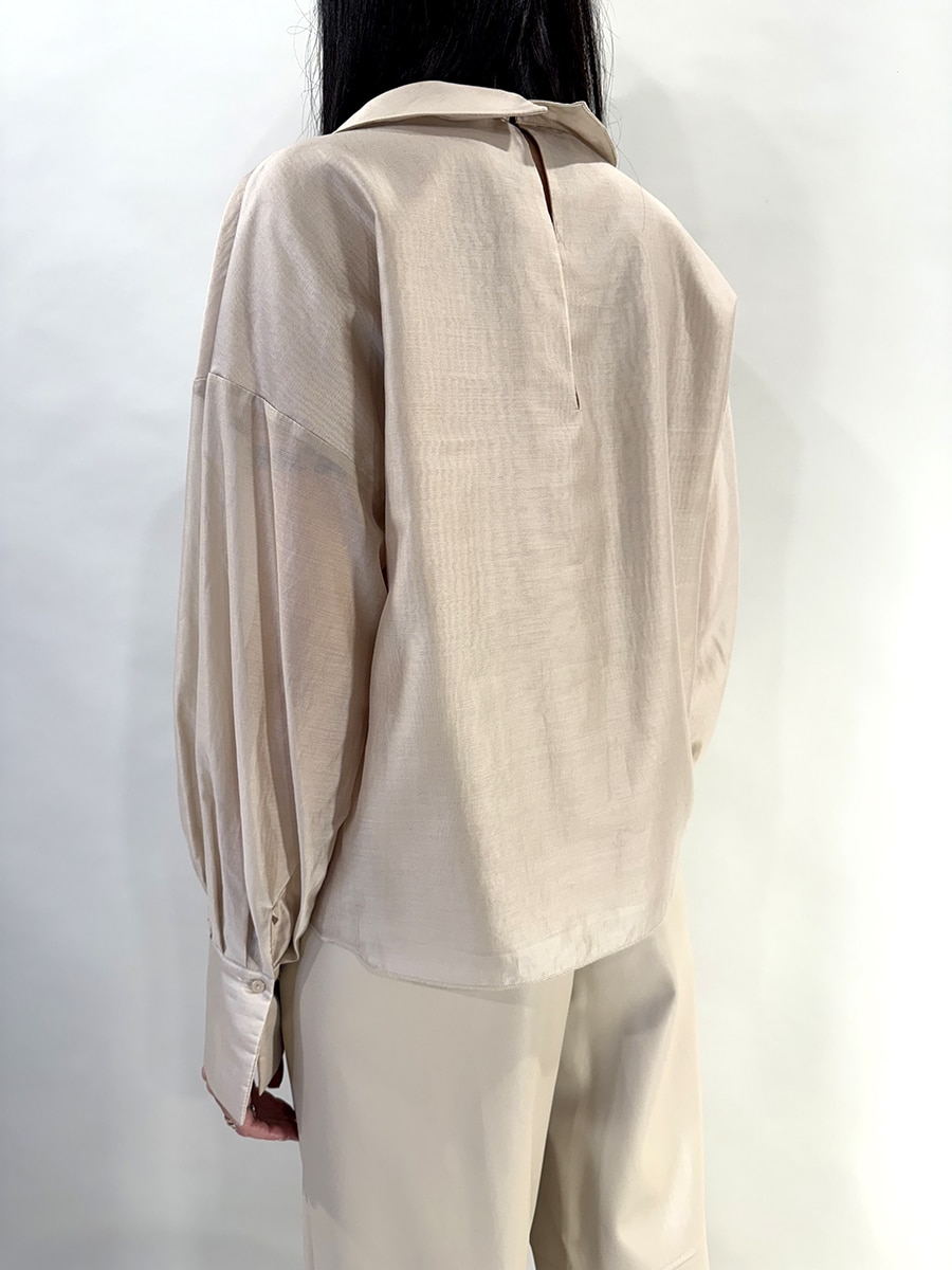 Le maniche sono lunghe e ampie e terminano con polsini alti e strutturati, chiusi con un bottone. linea dritta e leggermente corta con una vestibilità comoda ma sofisticata.