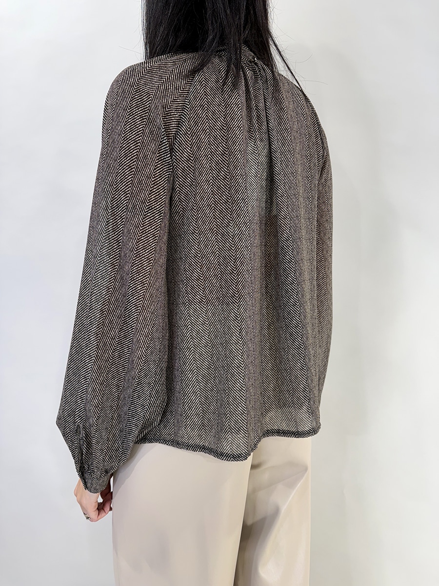 Il fiocco davanti dona un tocco raffinato e vintage. le maniche lunghe sono leggermente ampie e si chiudono con polsini alti con bottone mentre la linea del corpo è morbida e fluida garantendo comfort e movimento.