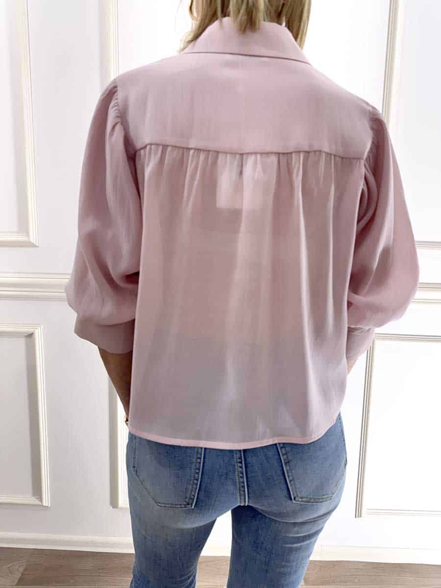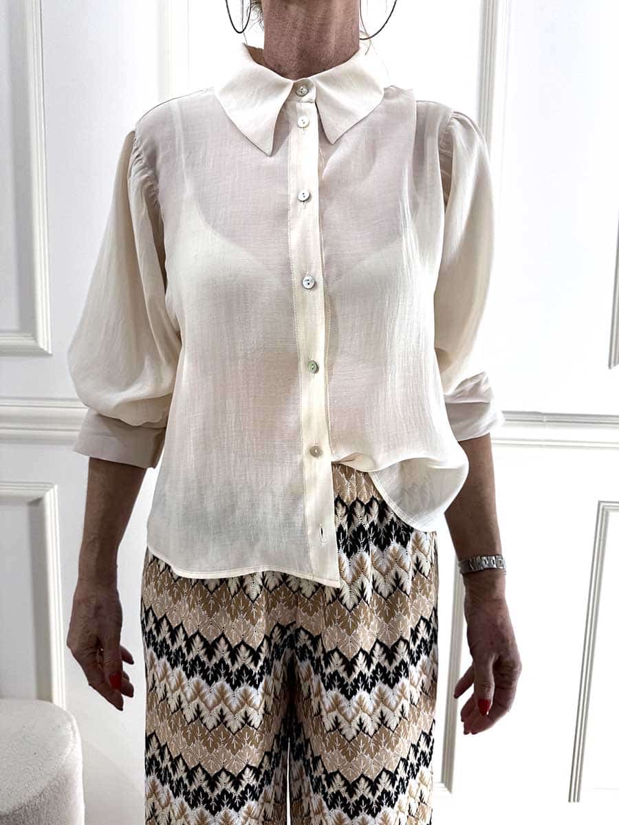 Camicia in tessuto leggero , bottoncini sul davanti per la chiusura, manica a palloncino.