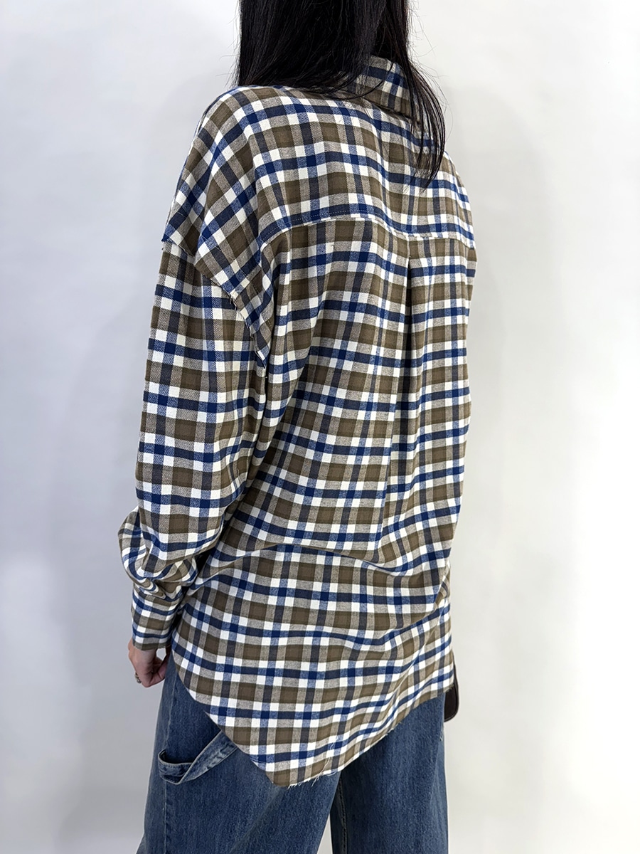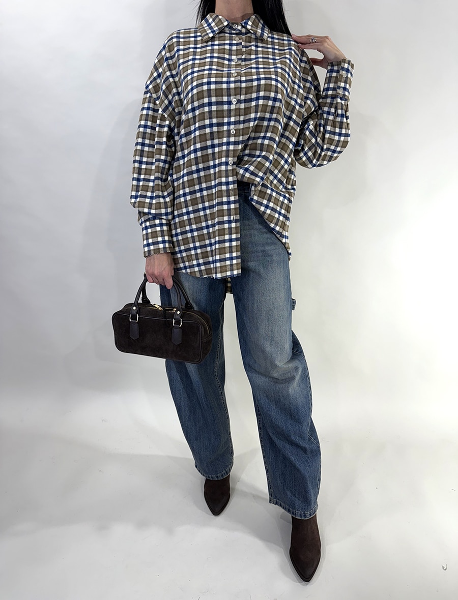Camicia in flanella con fondo, polsini e giromanica a taglio vivo. Stile casual e leggermente oversize con spalle scese e maniche ampie. Toni del marrone, blu e bianco