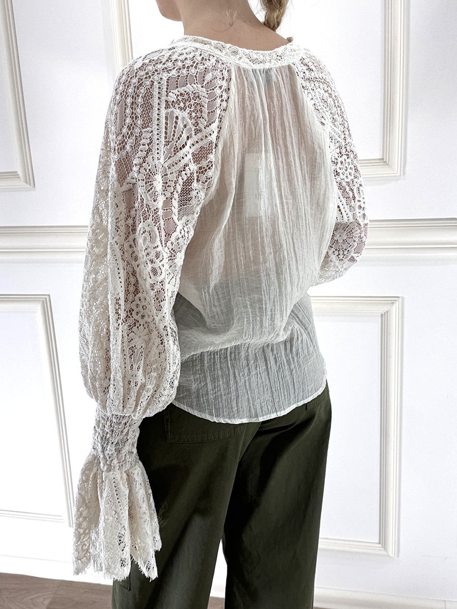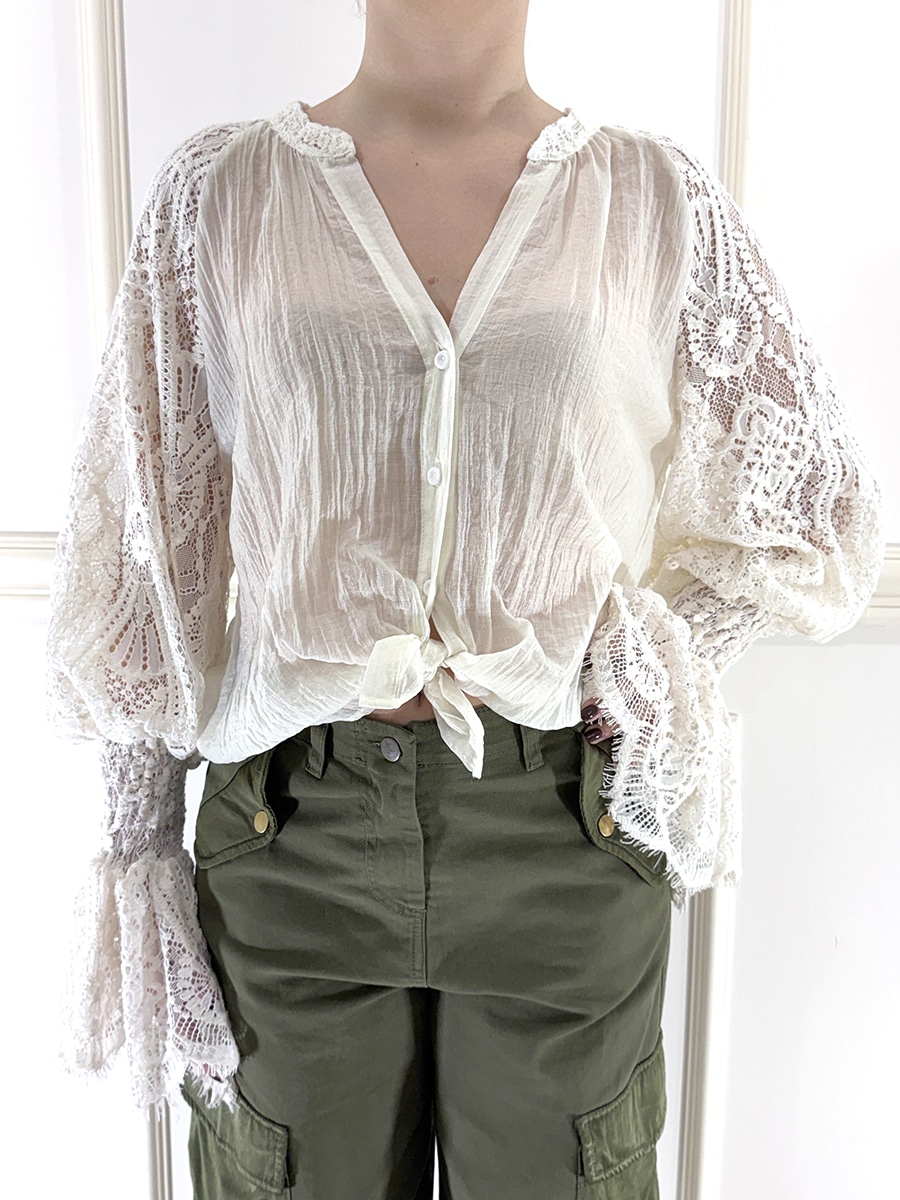 Camicia con maniche in pizzo , bottoncini sul davanti e scollo v.