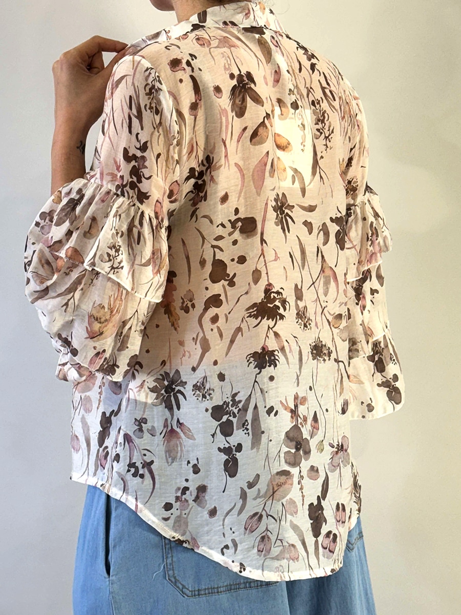 Camicia con balze nelle maniche , stampa fantasia floreale , bottoncini davanti