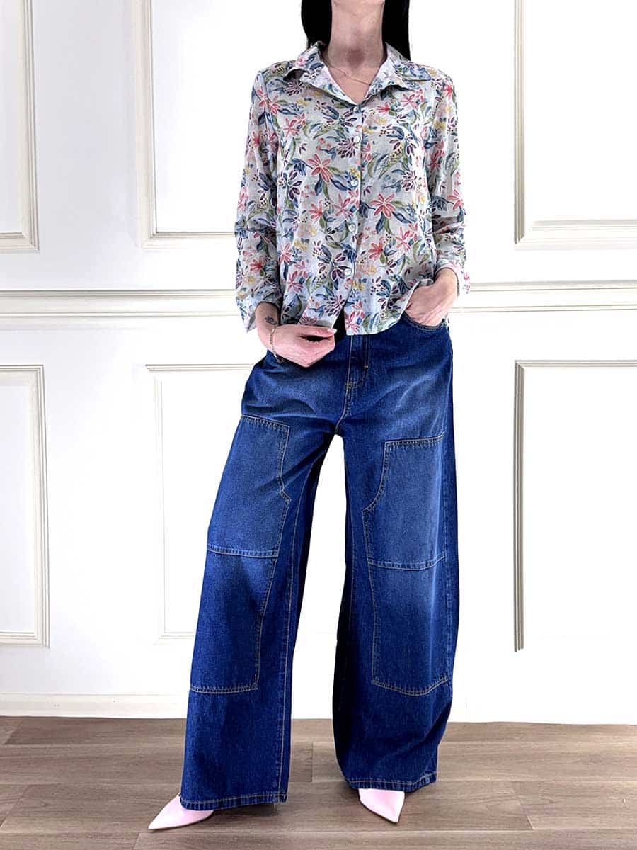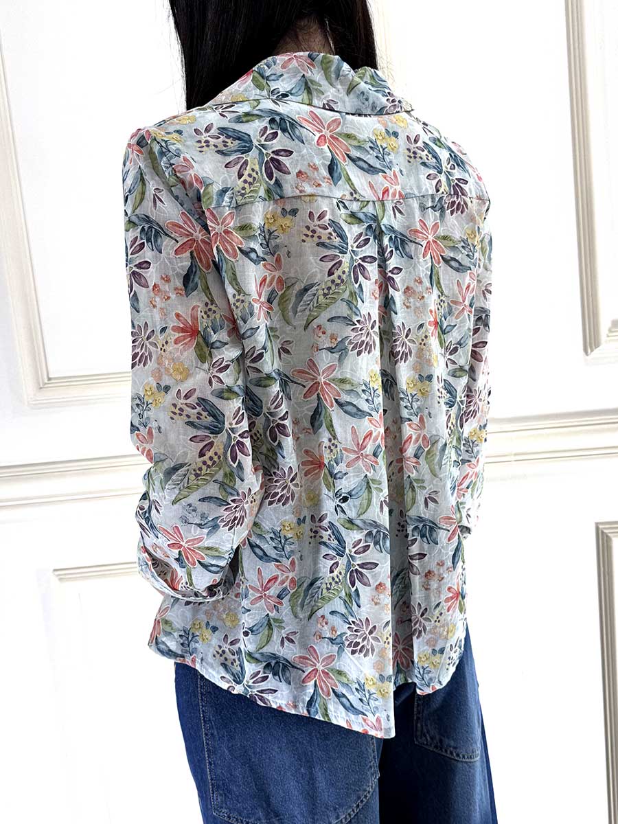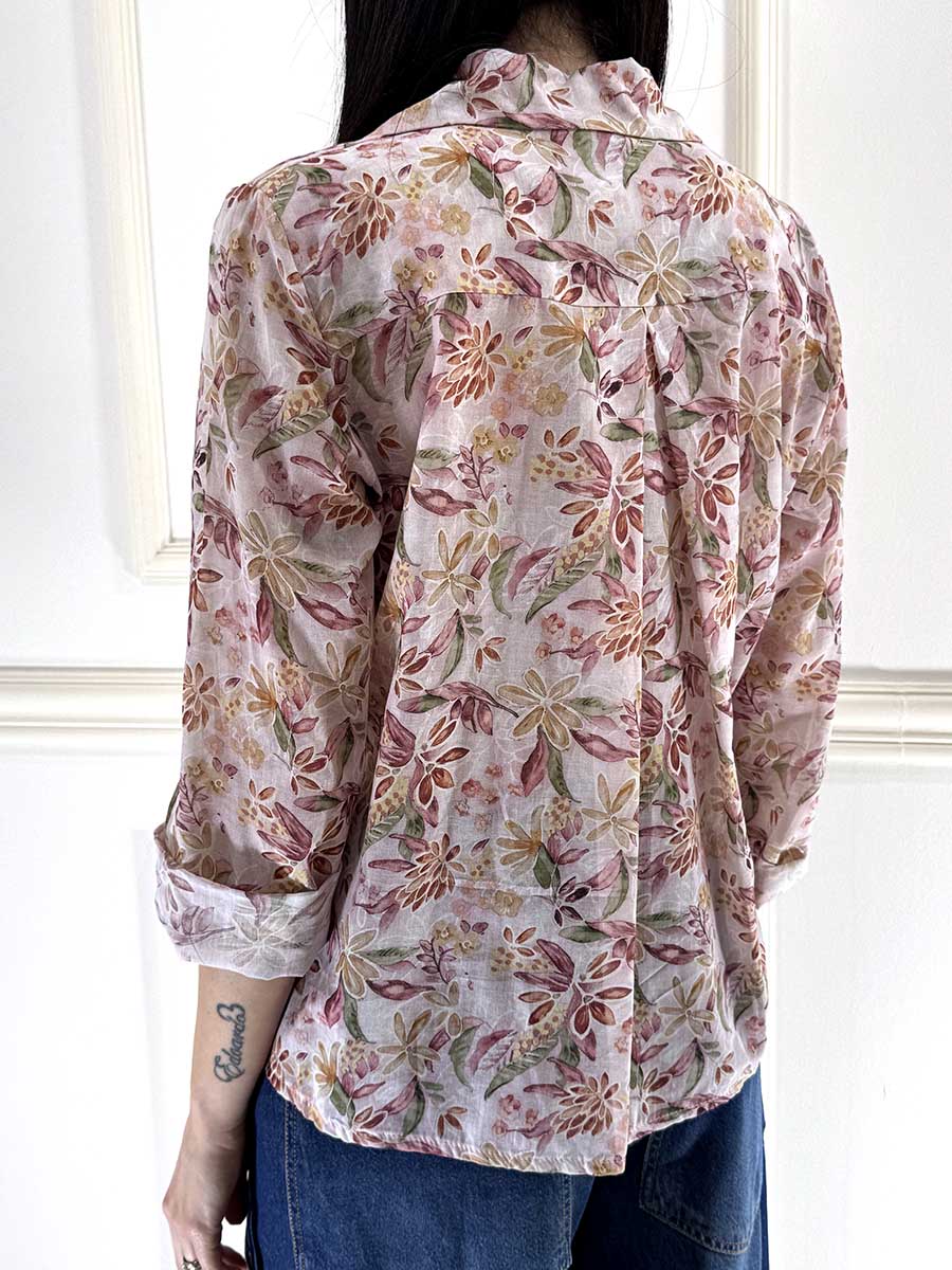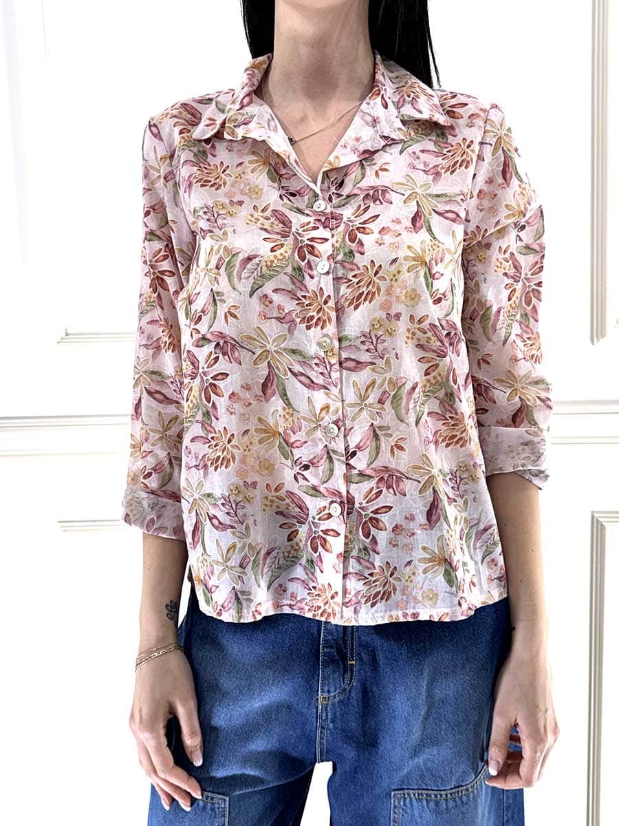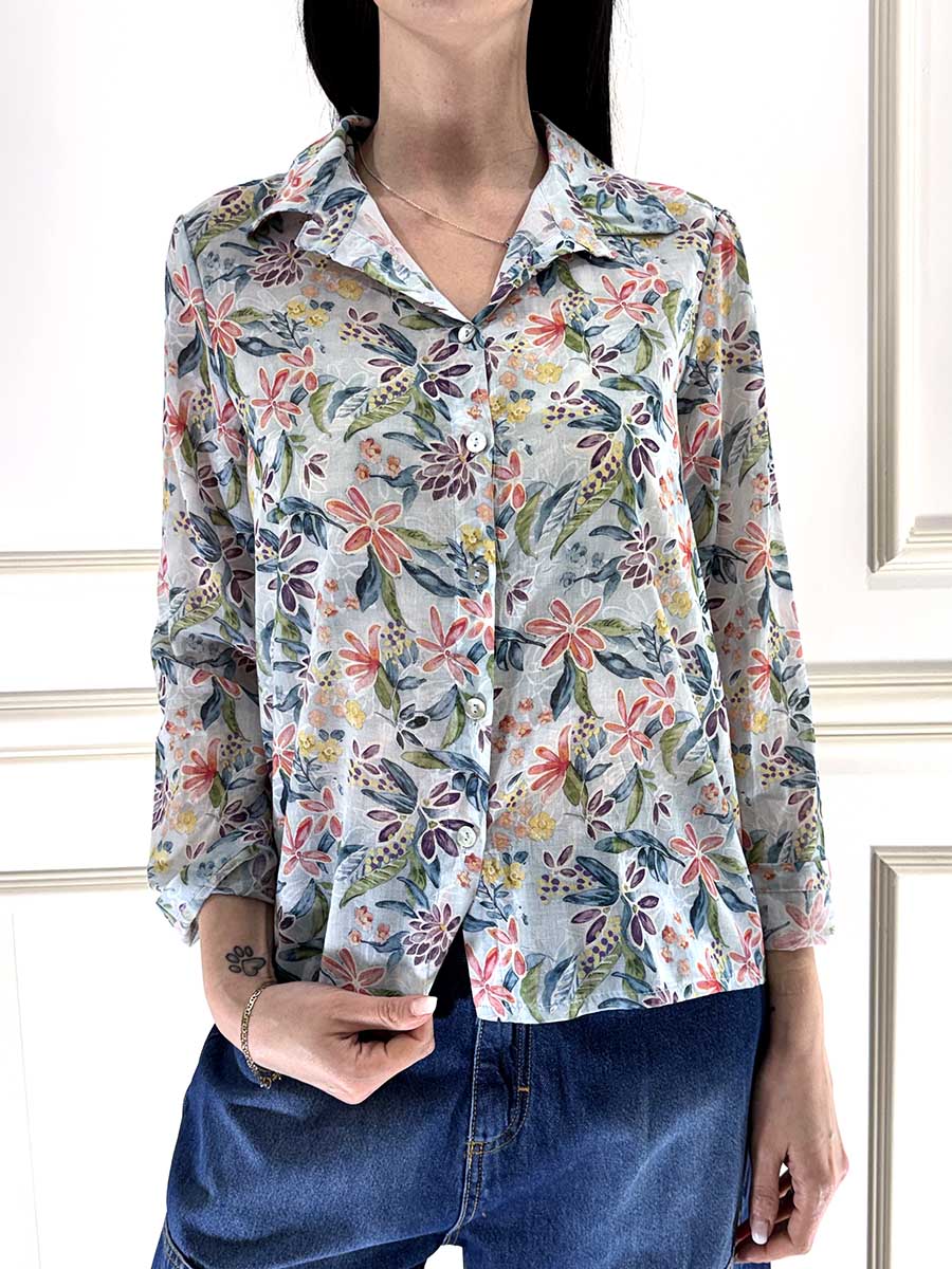 Camicia in stampa floreale , tessuto leggero, bottoncini davanti per la chiusura e colletto regolare, vestibilità comoda.