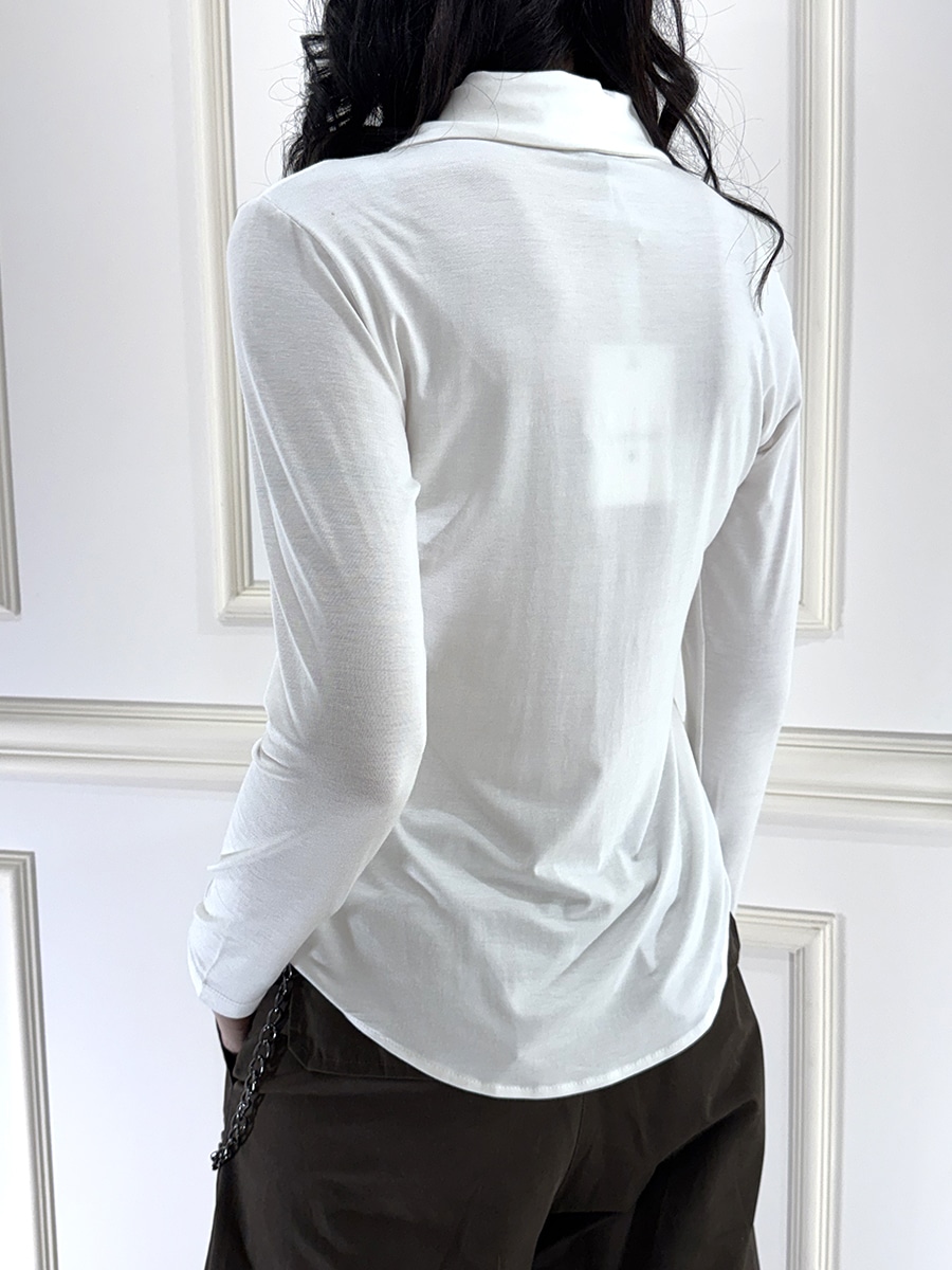 Camicia in maglia con colletto e bottoncini davanti , tessuto viscosa elasticizzata, manica lunga.