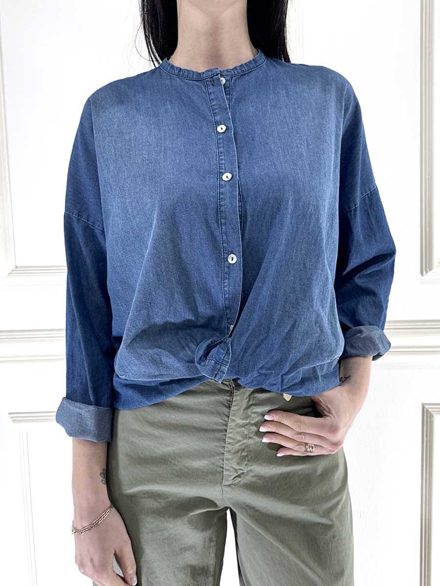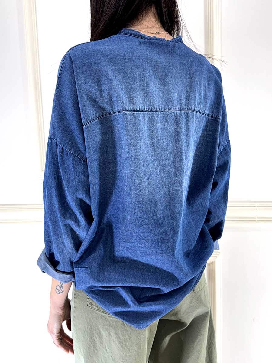 Camicia in chambray modello over bottoncini davanti, vestibilità comoda , modello non sfiancato .