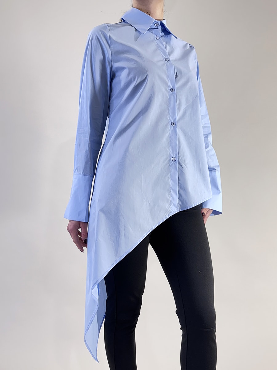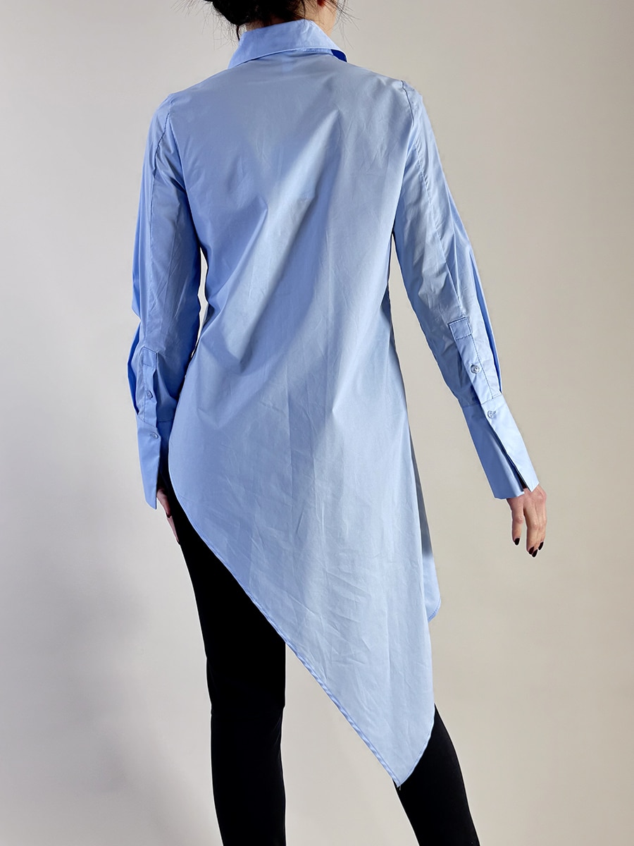 Camicia lunga in cotone asimmetrica , taglio dinamico e moderno.