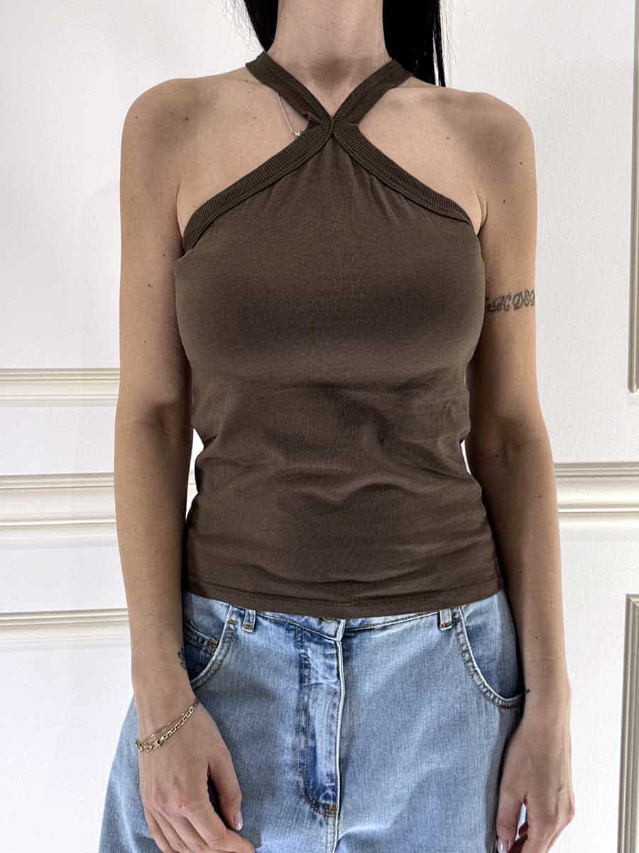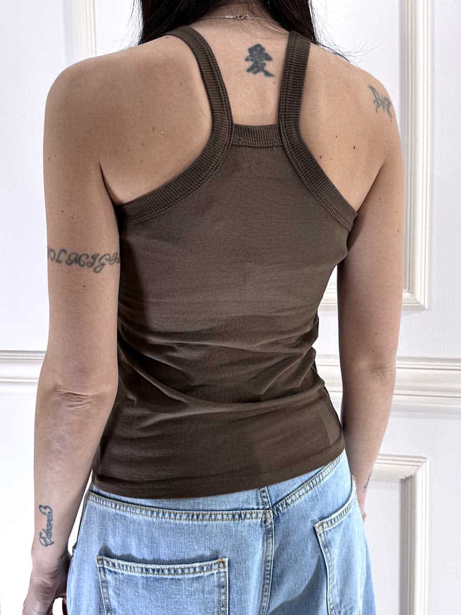 Canotta modello vogatore ,elasticizzata, esalta la silhoeutte con discrezione.