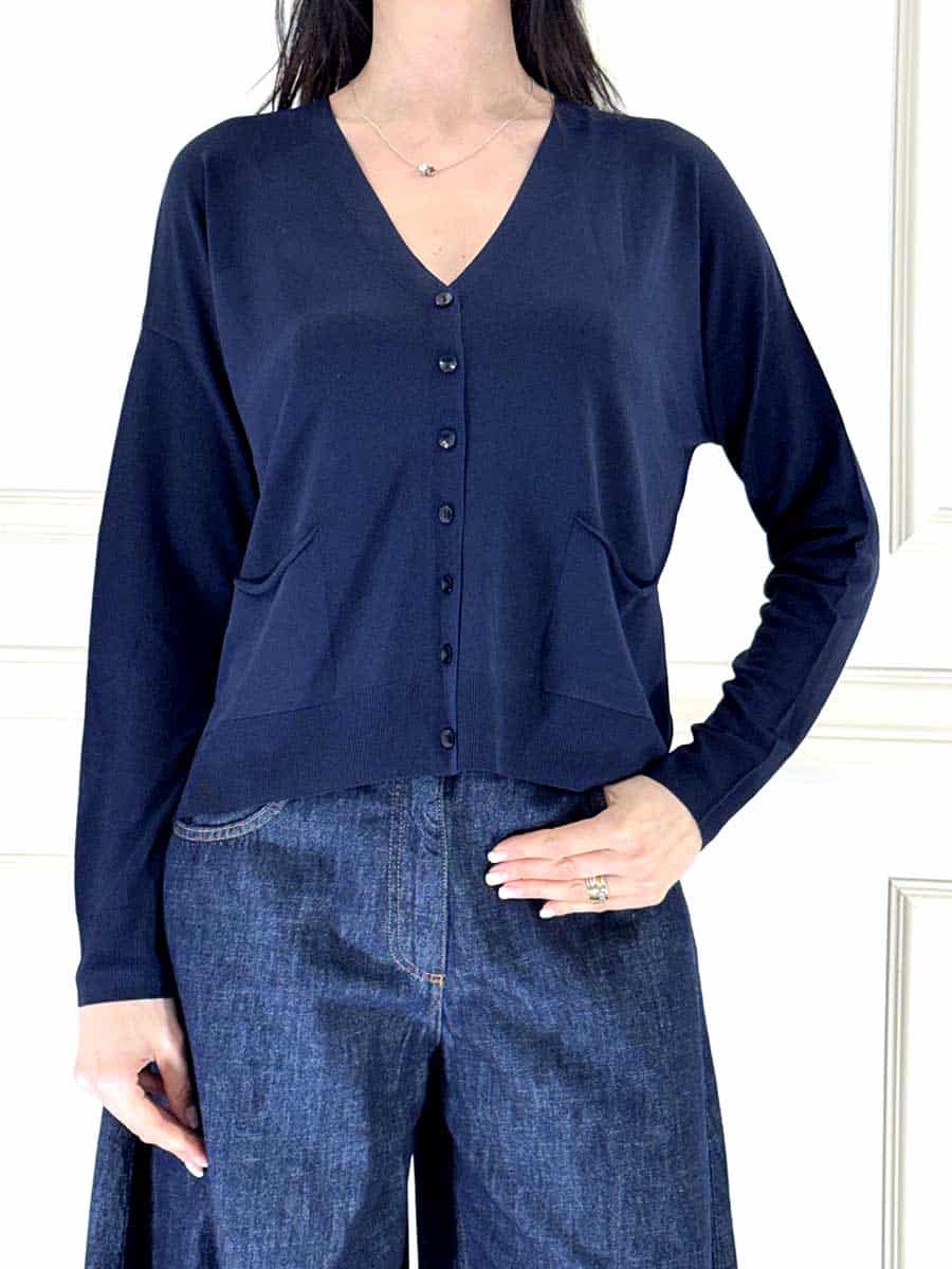 Cardigan con tasche davanti e bottoncini per la chiusura, manica lunga , tessuto leggero ed elasticizzato,spacchetti laterali, capo versatile e vestibilità comoda.