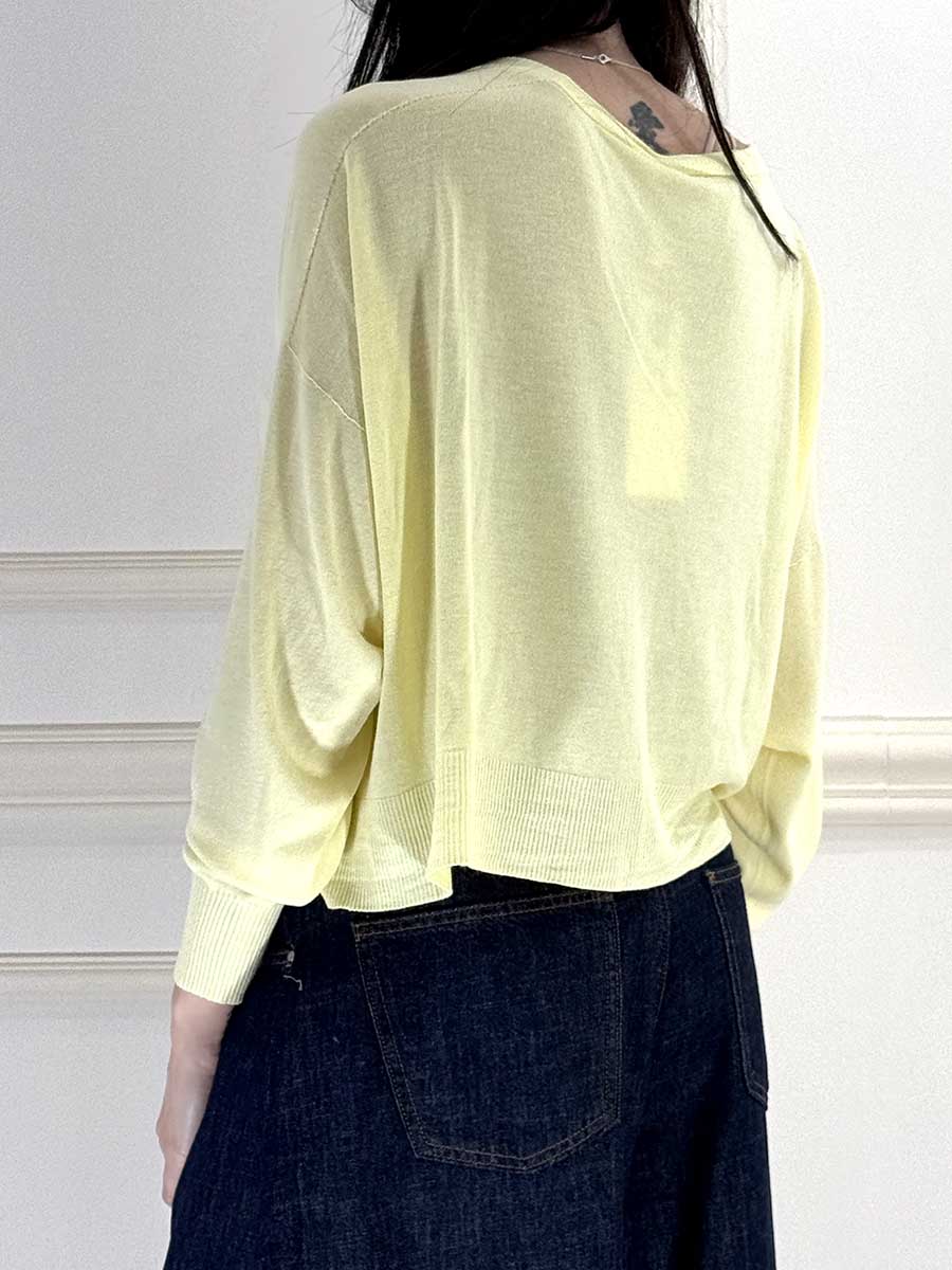 Cardigan vestibilità comoda , scollo a v, bottoncini sul davanti , profili a costine, manica lunga, tessuto sottile , capo versatile.
