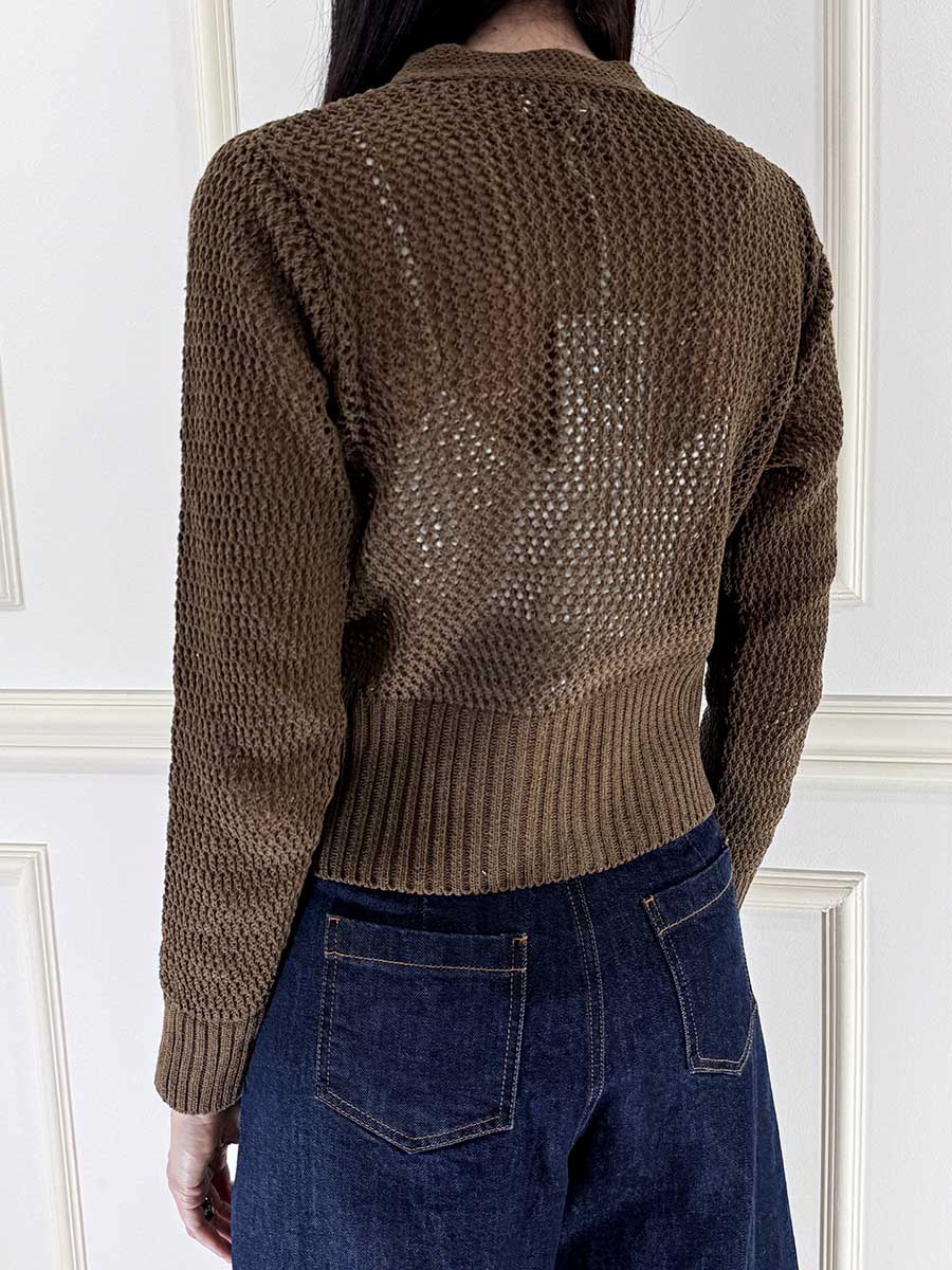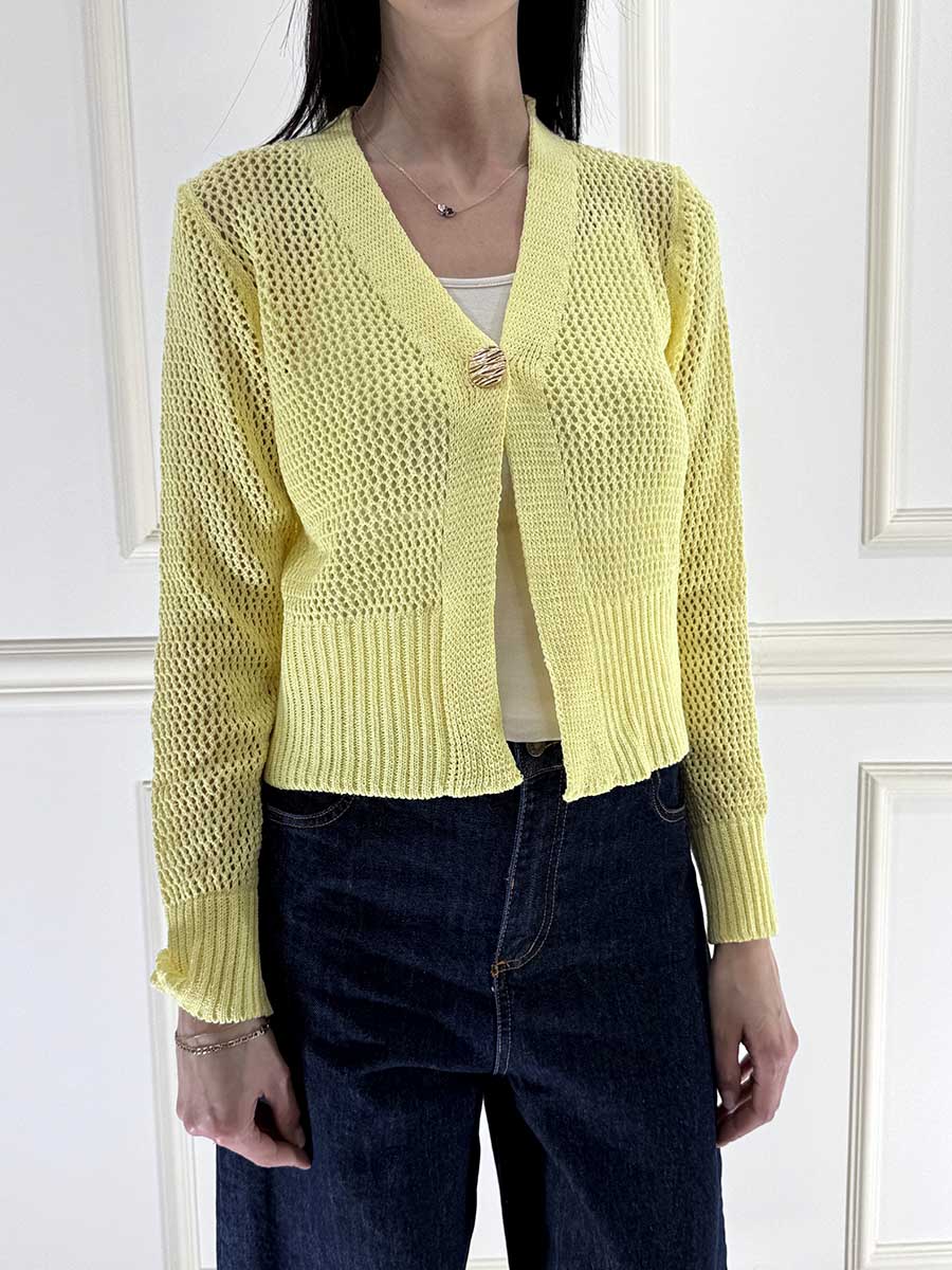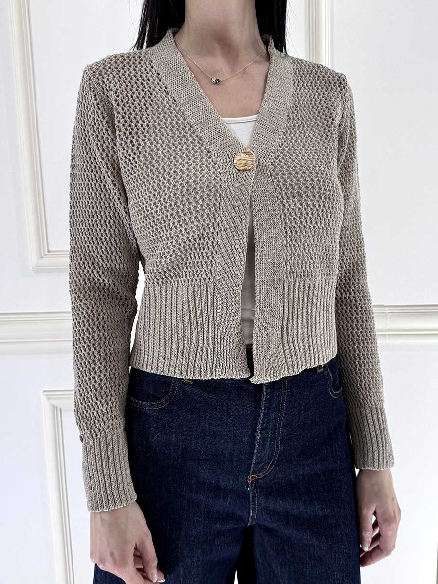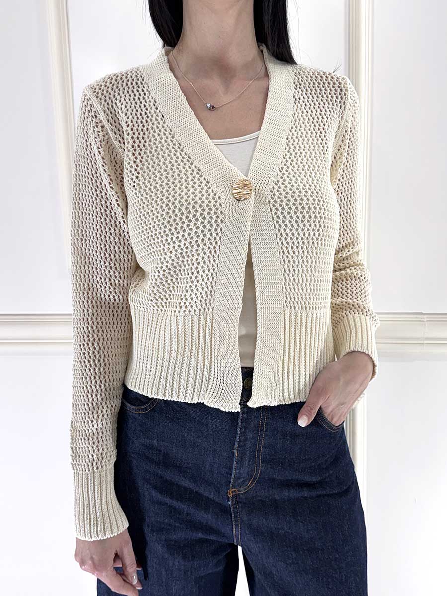Cardigan Crop Traforato 1 Bottone Dorato, vestibilità comoda.
