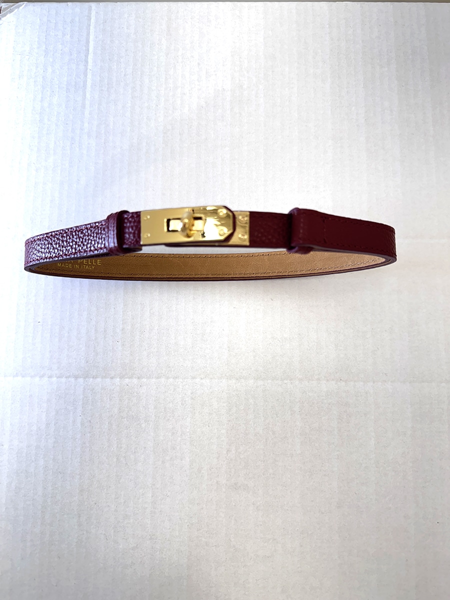 Cintura sottile in pelle martellata con chiusura davanti colore oro