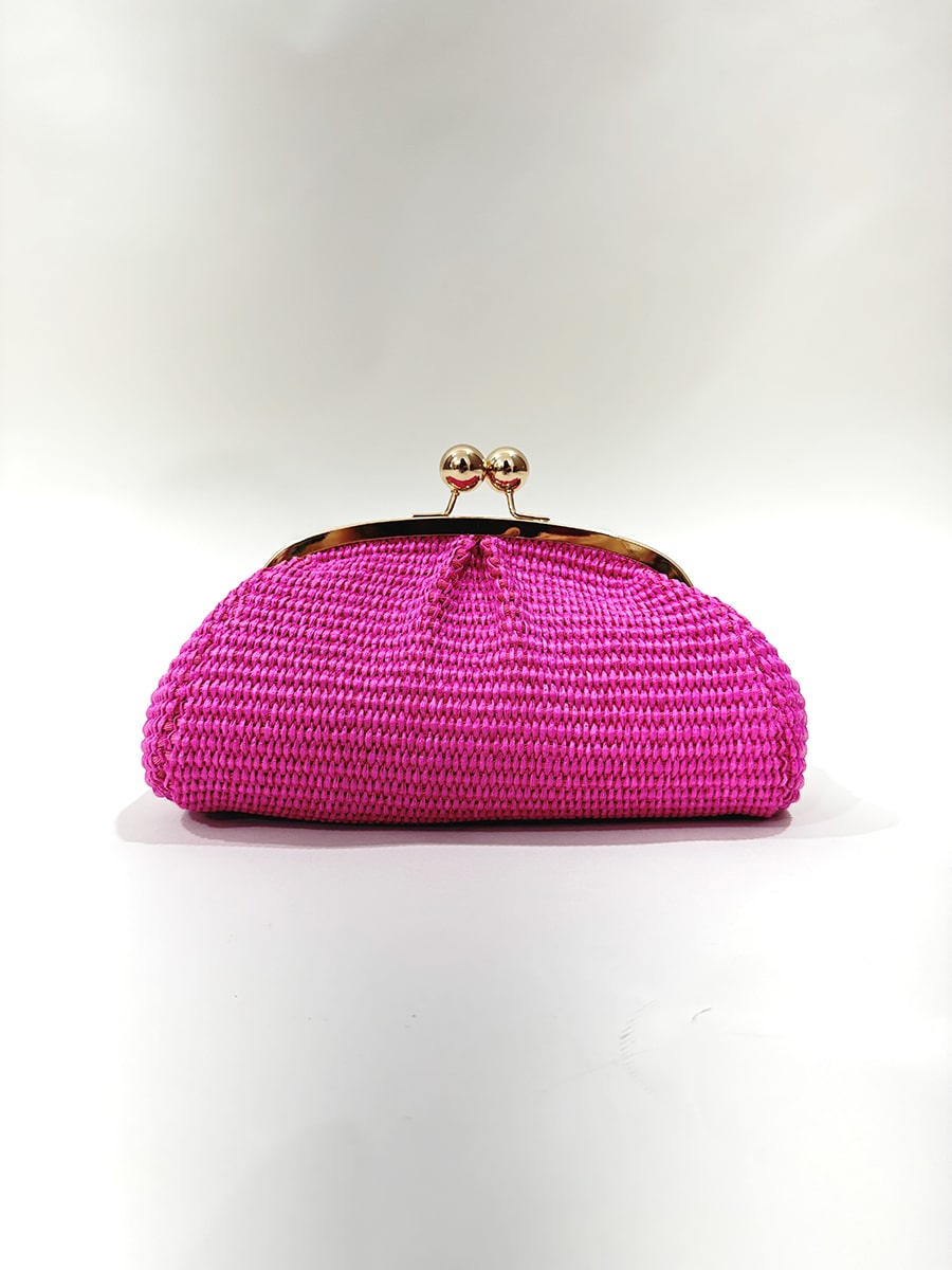 Borsa clutch piccola , in rafia chiusura a scatto a clip metallica dorata. colore vivace per aggiungere un tocco pop a un outfit neutro o per esaltare un look estivo.