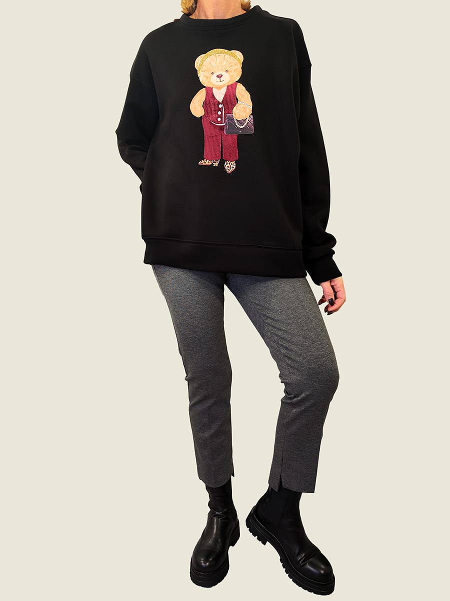 FELPA FELPATA CON STAMPA ORSO CON DETTAGLI IN RILIEVO E STRASS