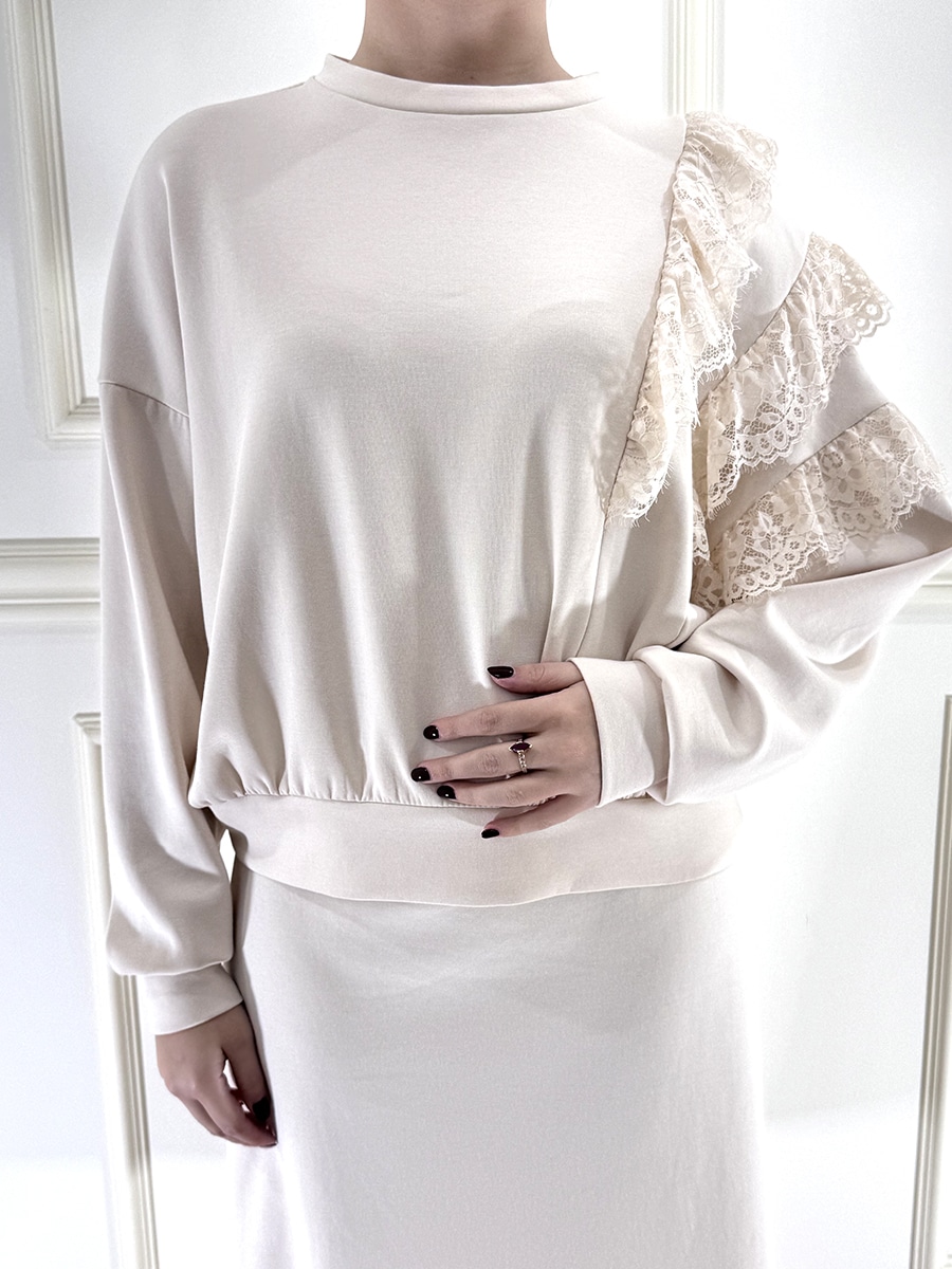 Felpa girocollo con pizzo nella manica che conferisce un tocco elegante al capo.