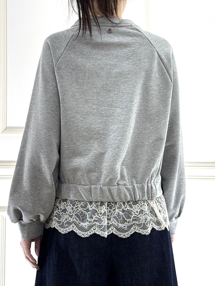 Felpa girocollo manica lunga con inserti in pizzo in fondo , fascione in fondo con elastico, cotone garzato.