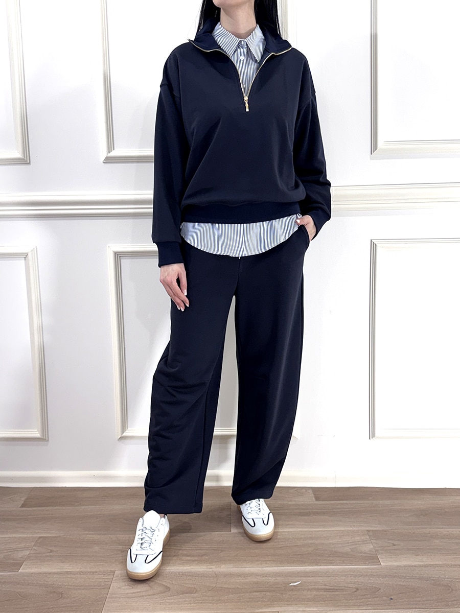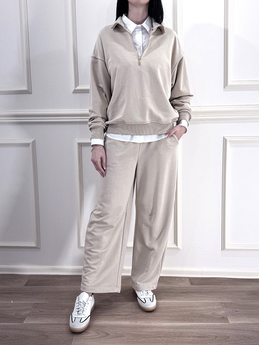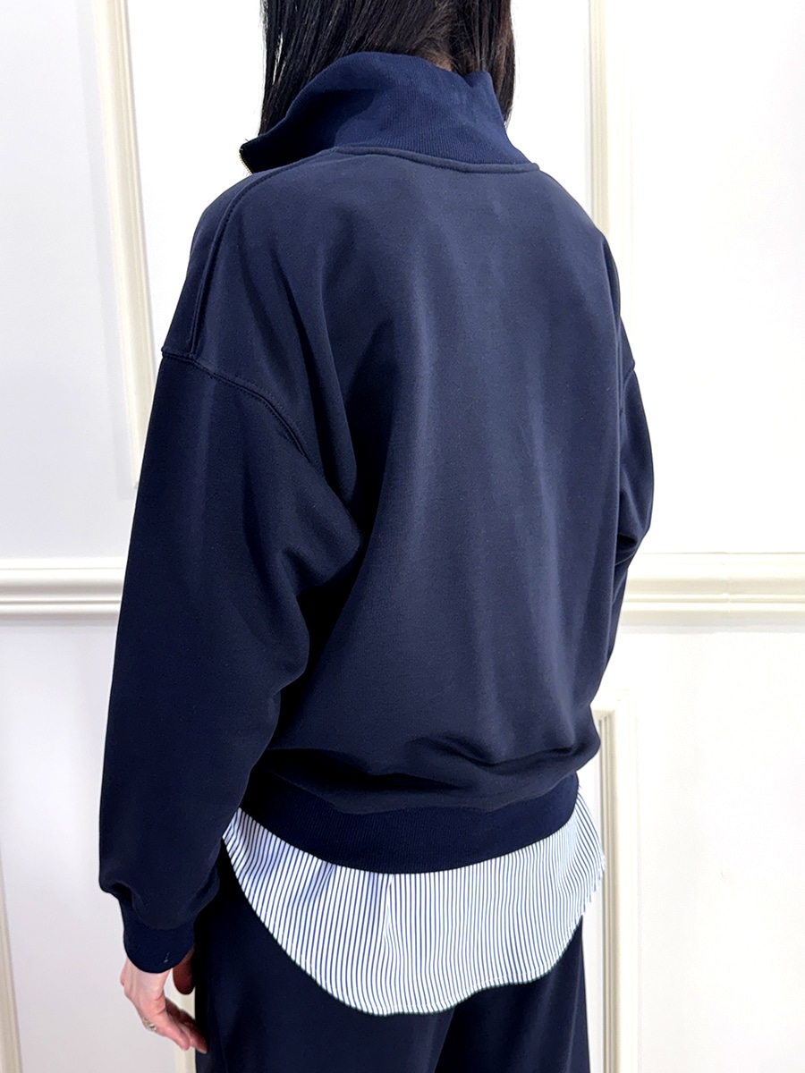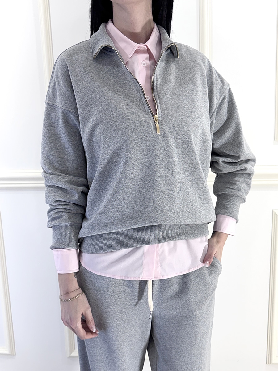 Felpa con zip per la chiusura, polsino e fondo elasticato , vestibilità comoda e morbida, spalla scesa.