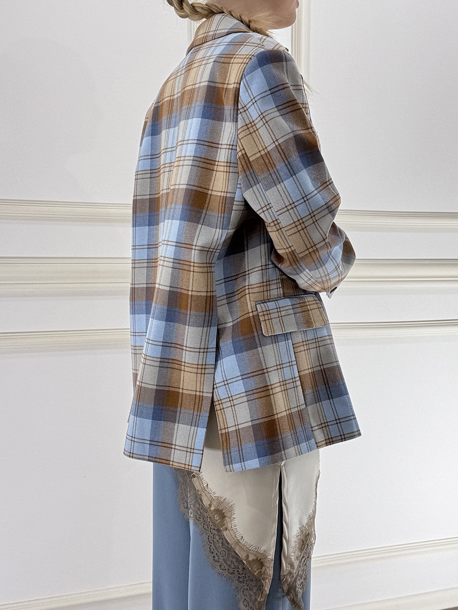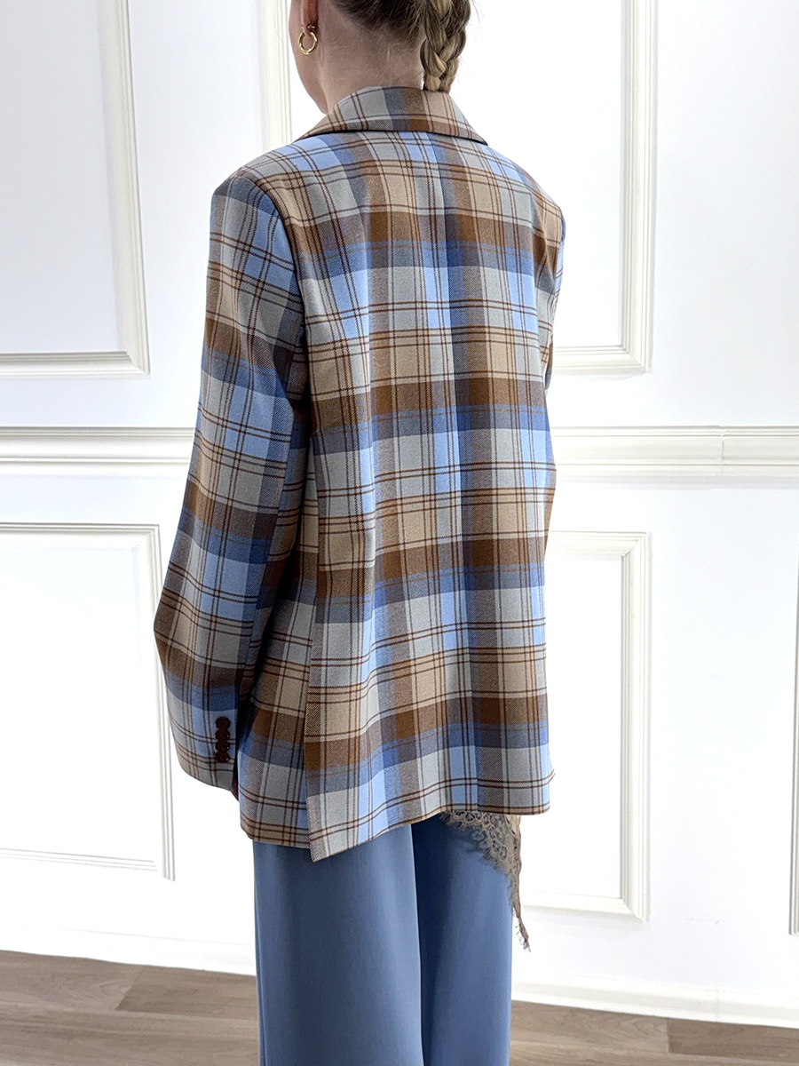 Giacca check dal taglio maschile , spille applicate , modello over.