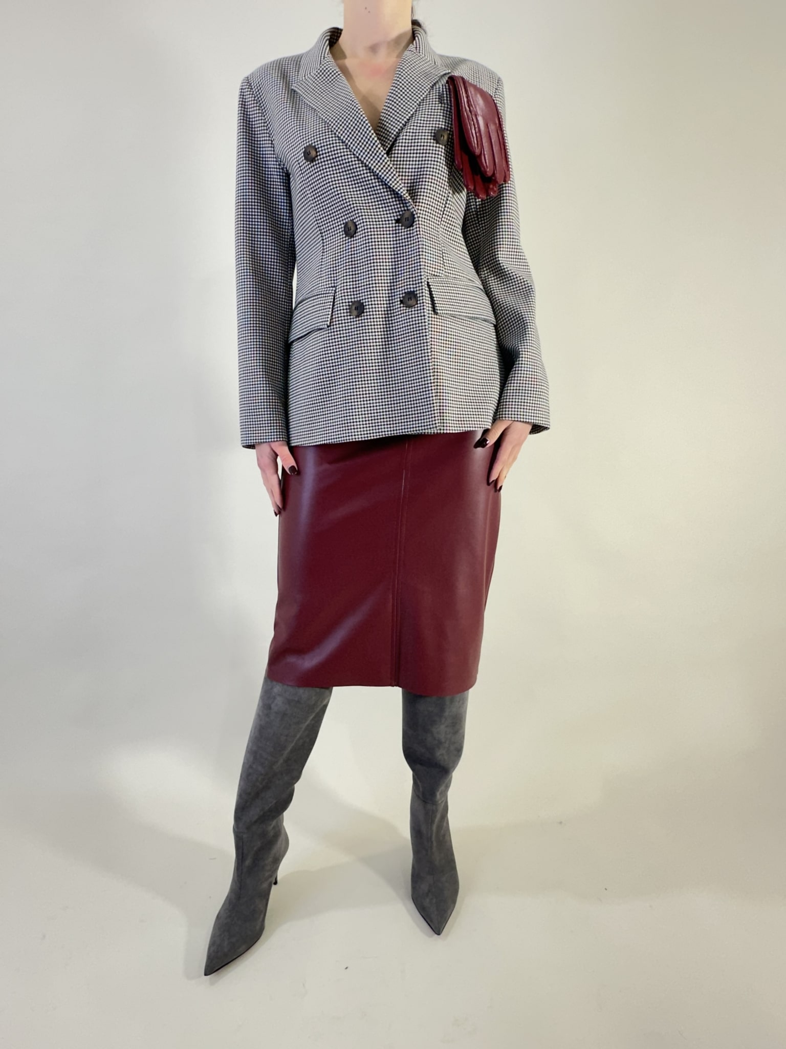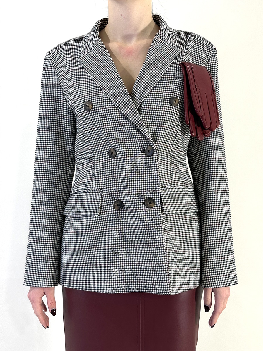 Guanti in ecopelle inseriti nel taschino per un twist glamour ed originale.