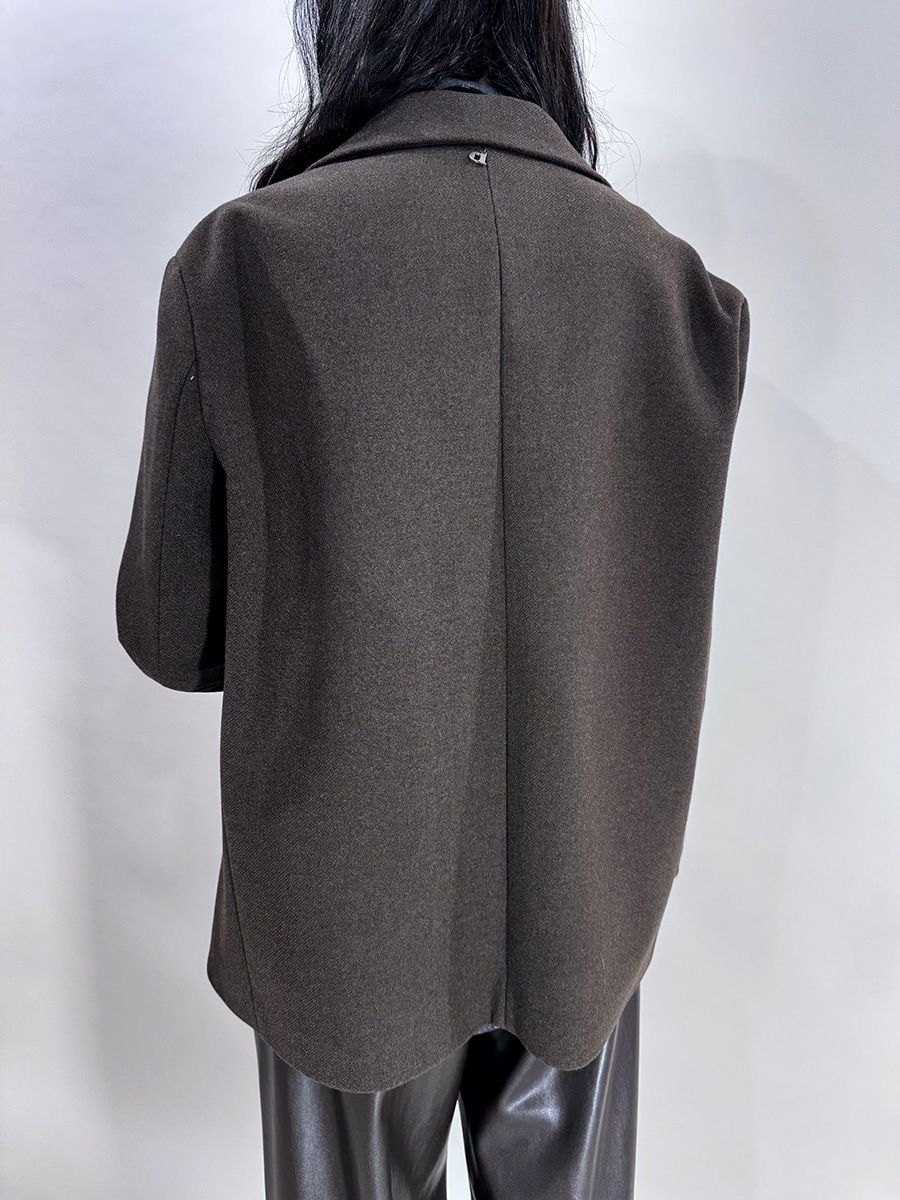Giacca in lana dal taglio morbido, linea leggermente dritta e oversize .Rever classico con spilla , chiusura con bottone singolo e tasche laterali con patta. Capo elegante e versatile , ideale da abbinare sia a look formali sia a outfit più casual per un ‘eleganza rilassata e contemporanea .