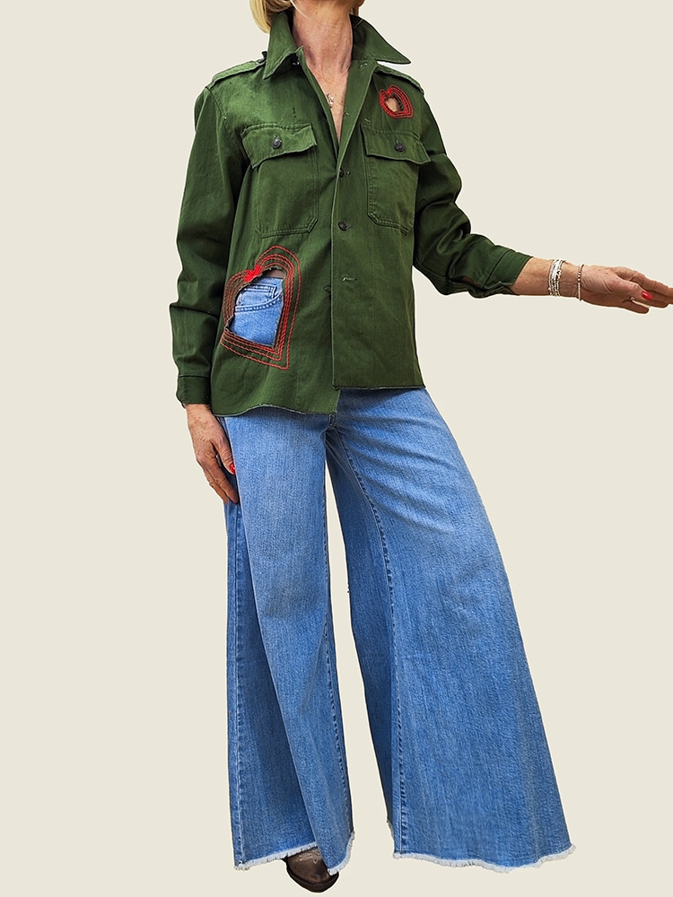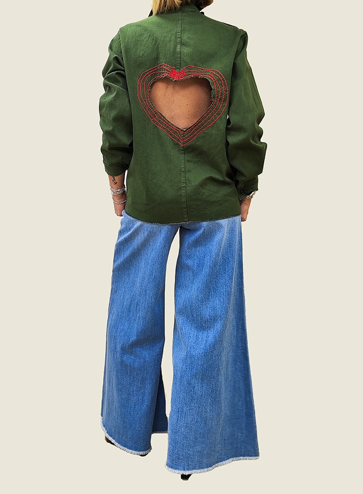 GIACCA VERDE MILITARE CON CUORI MOTEL