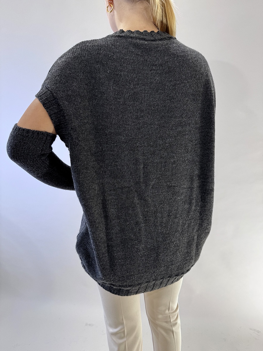 Gilet con manicotti un capo che unisce stile e comodità. linea leggermente stondata sul davanti dona al capo un look femminile e glamour. Texture morbida.