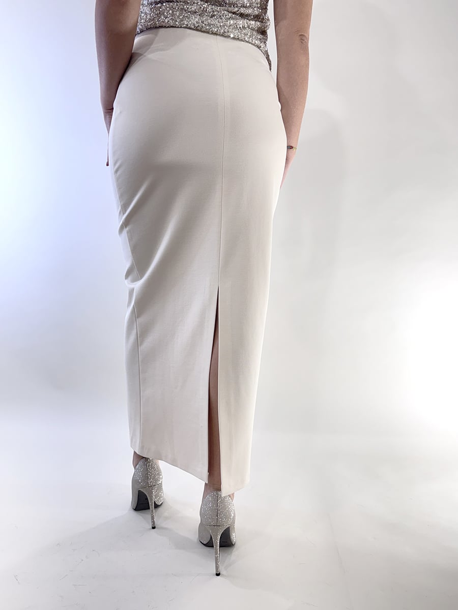 Gonna in punto milano , modello matita ,elastico in vita , spacco accennato sul retro.