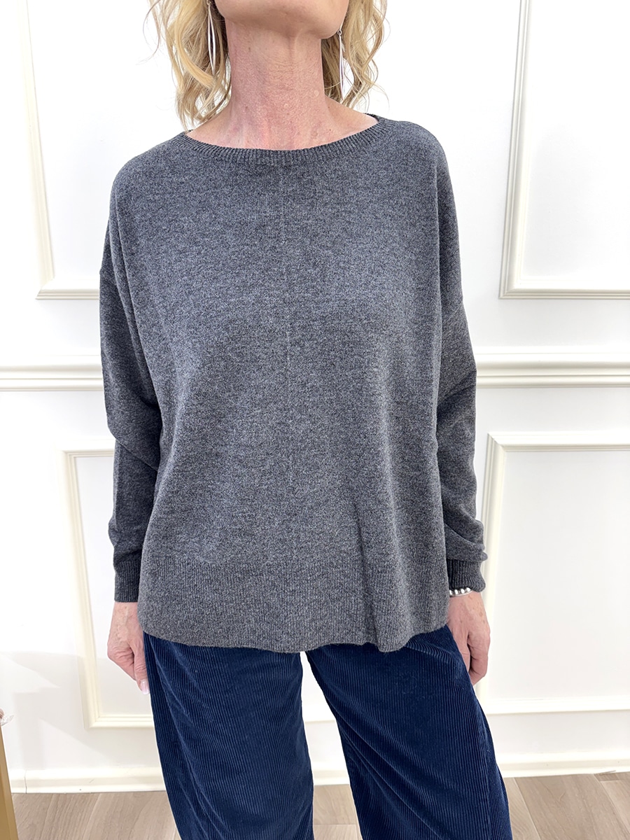 Maglia a scatolina girocollo , manica lunga , vestibilità comoda,texture morbida, spacchetti laterali.