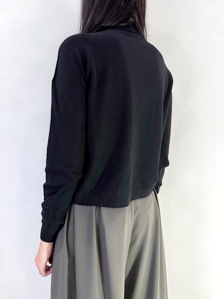Maglioncino collo alto, con collo e polsini a costine. Vestibilità morbida, leggermente ampia ma non oversize.