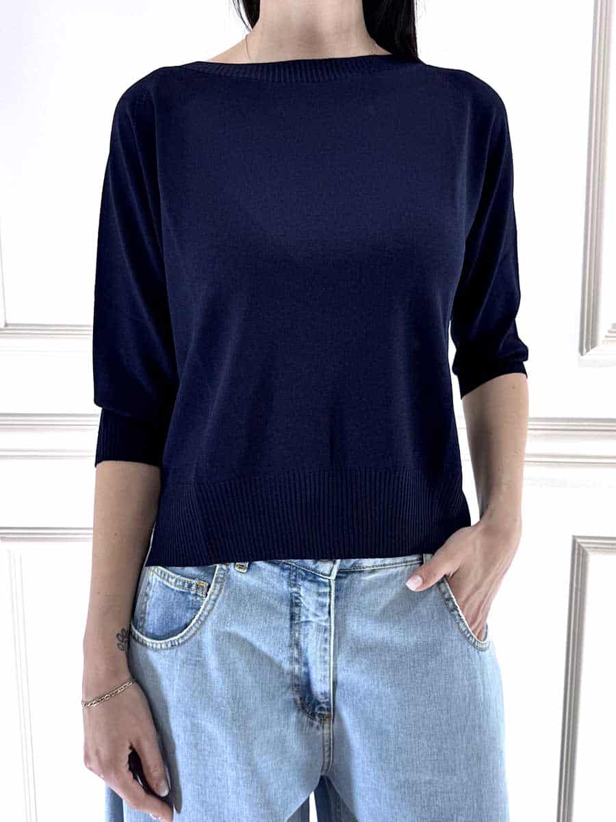 Maglia con Scollo a Barchetta in Viscosa Elasticizzata.