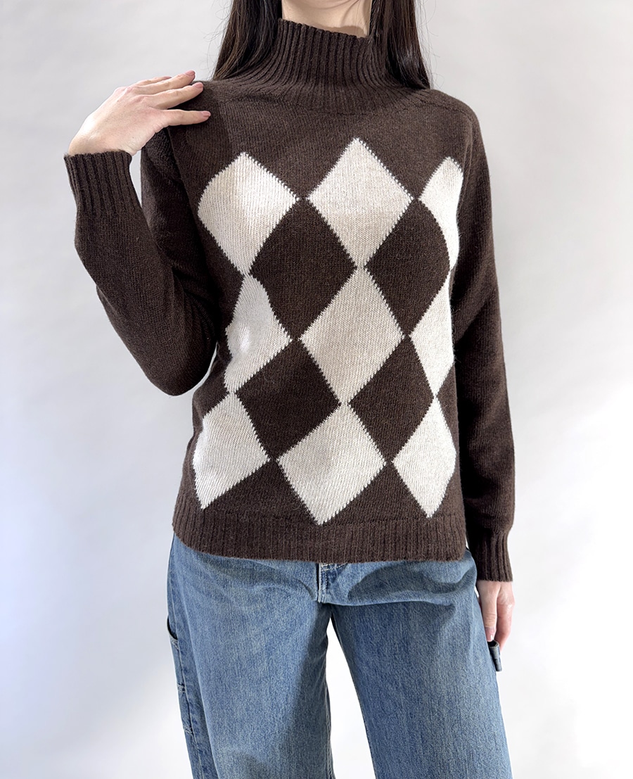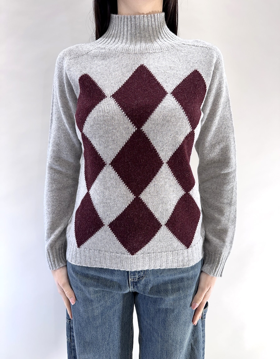 Maglione a collo alto a losanghe. Vestibilità regolare, collo, polsi e fondo a costine per un comfort ottimale. Un capo dallo stile classico e raffinato, perfetto per look casual e smart-casual. Disponibile in più varianti colore.