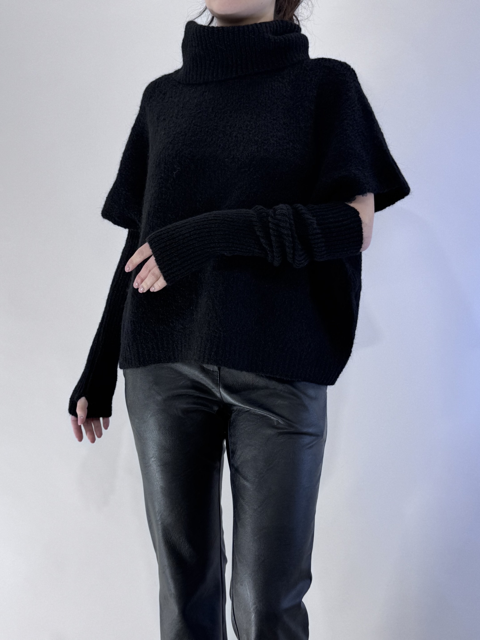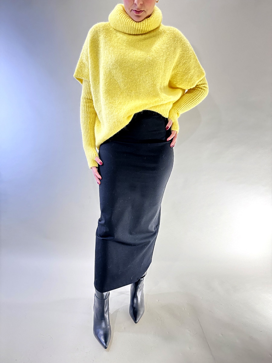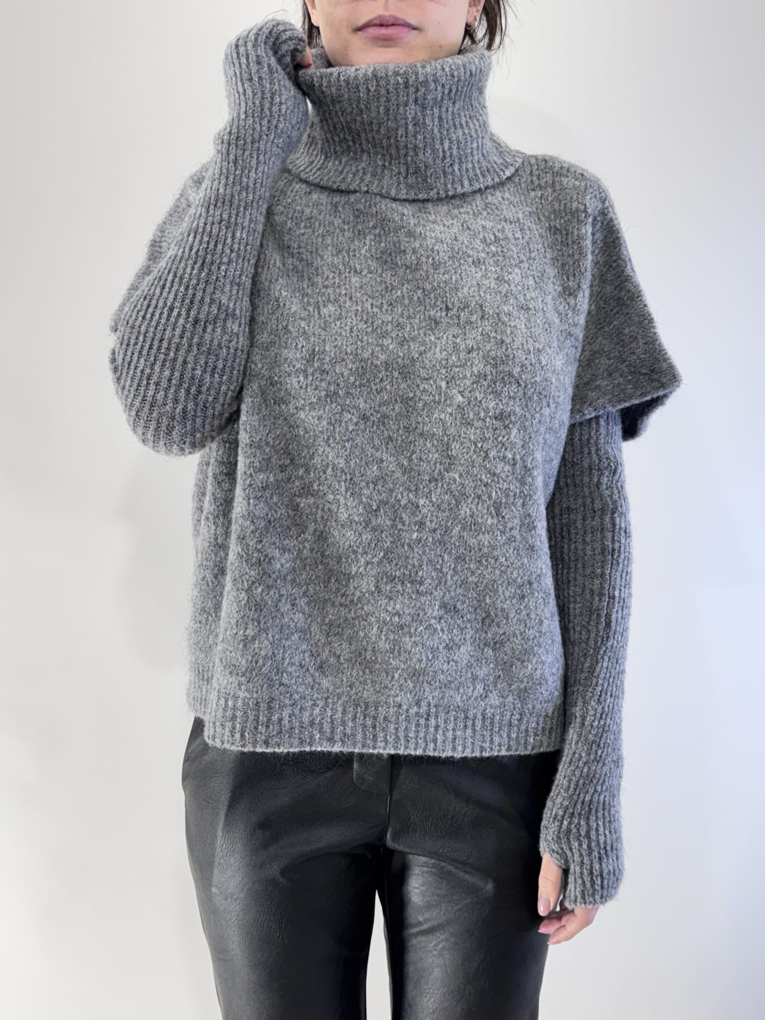 Maglia collo alto con manicotti , texture morbida , capo versatile adatto per rendere glamour i vostri outfit .
