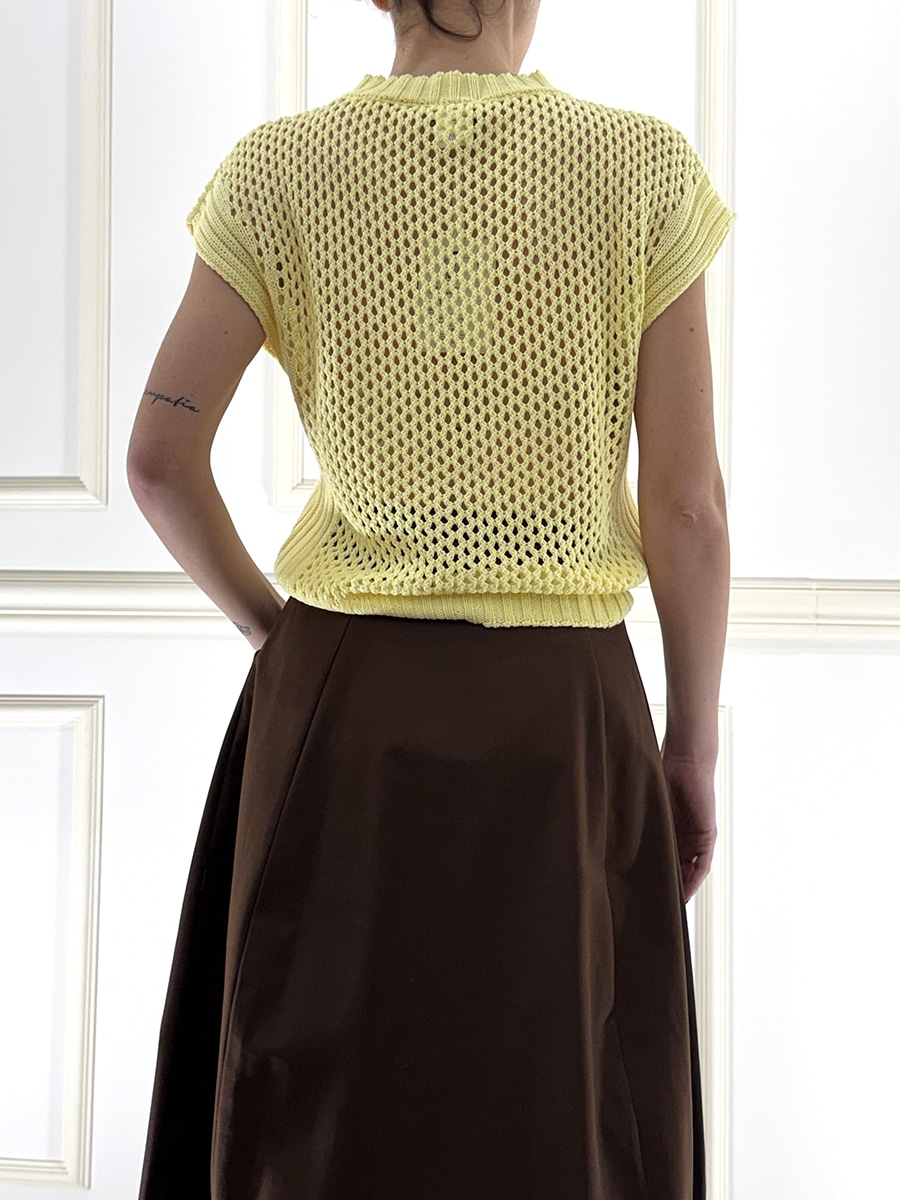 Maglia traforata girocollo., giromanica, vestibilità morbida.