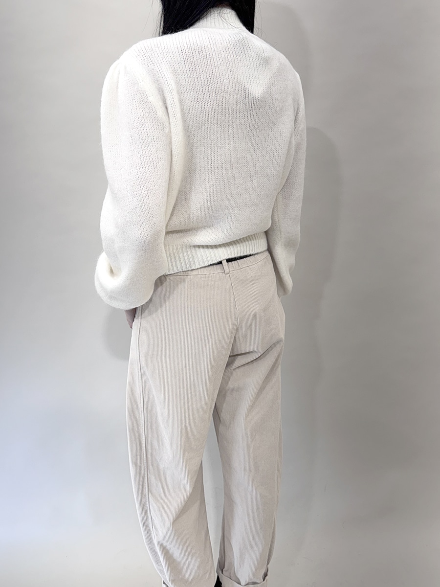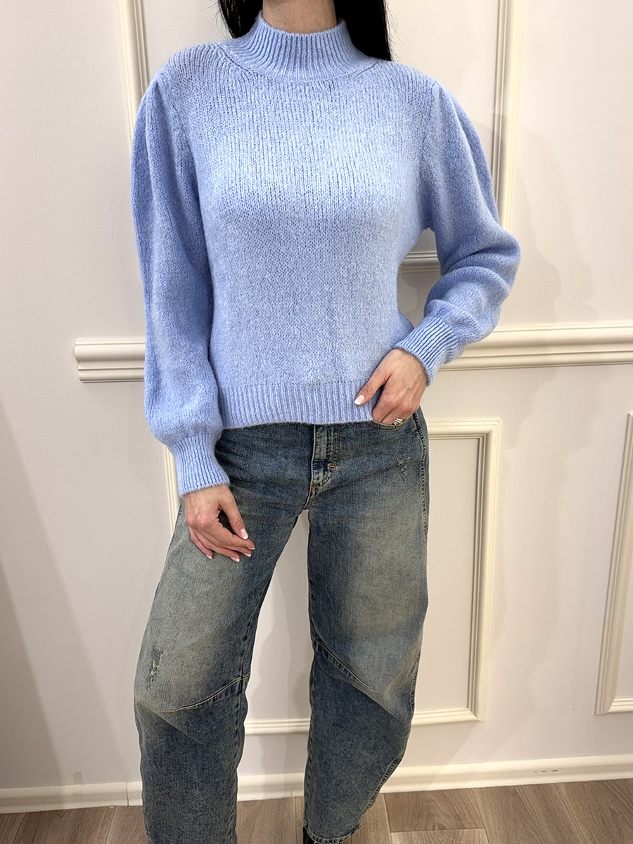 Lupetto in filato morbido, caratterizzata da collo alto a coste e maniche a palloncino che donano volume e femminilità al capo. La vestibilità regolare e il design pulito la rendono perfetta per look eleganti ma quotidiani. Un capo versatile, ideale da indossare sia da solo che in layering.