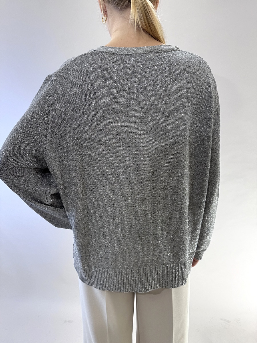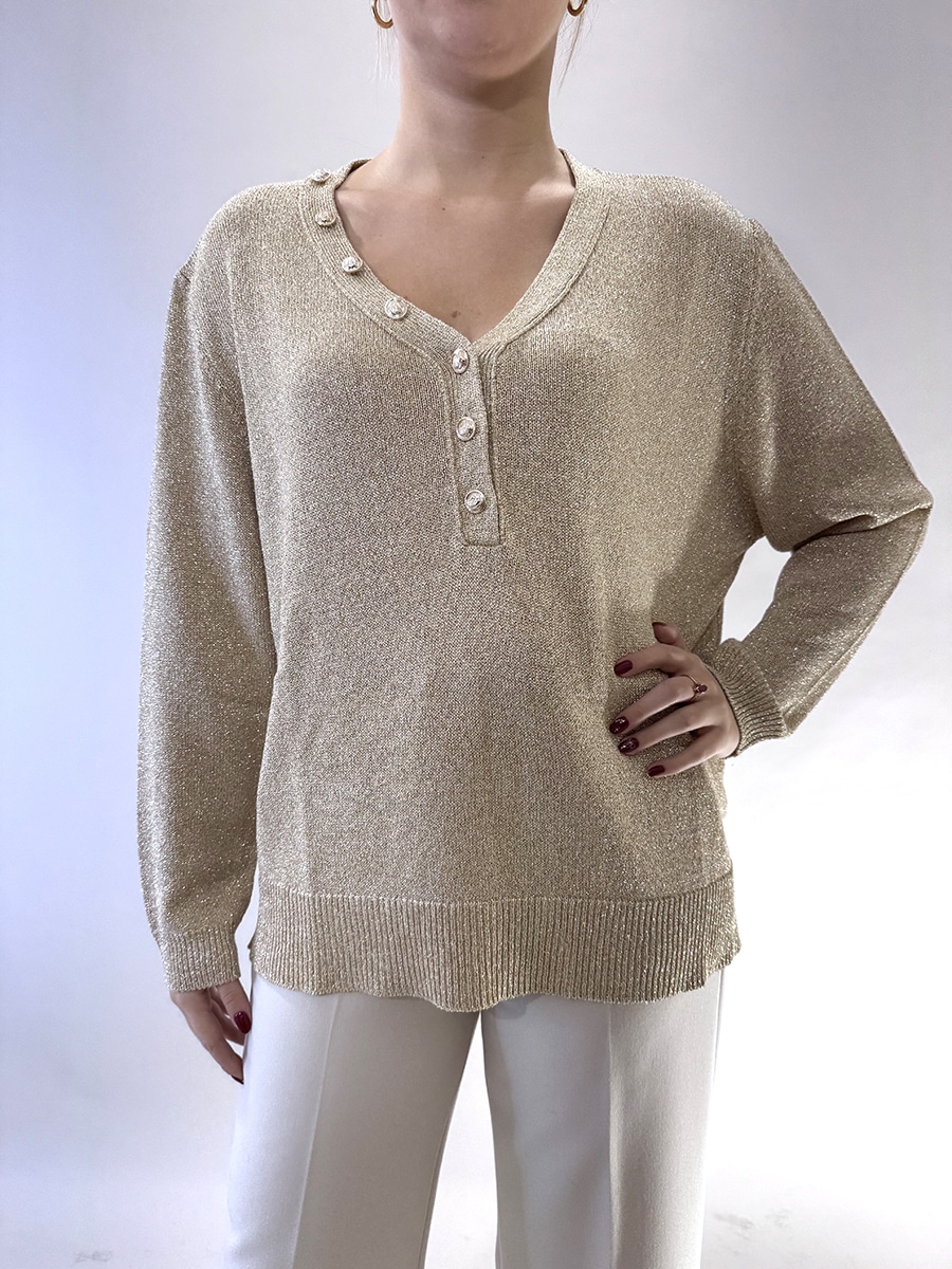 Maglia in lurex scollo v con bottoncini , manica lunga , fit non asciutto.