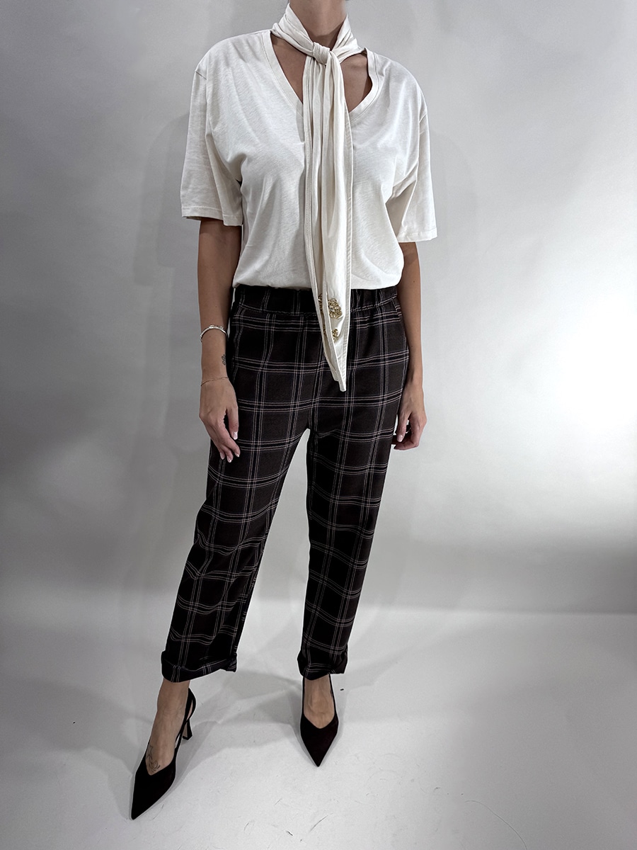 Maglia manica scesa, con nodo che dona un tocco glamour al capo,scollo v . cabochon applicati.