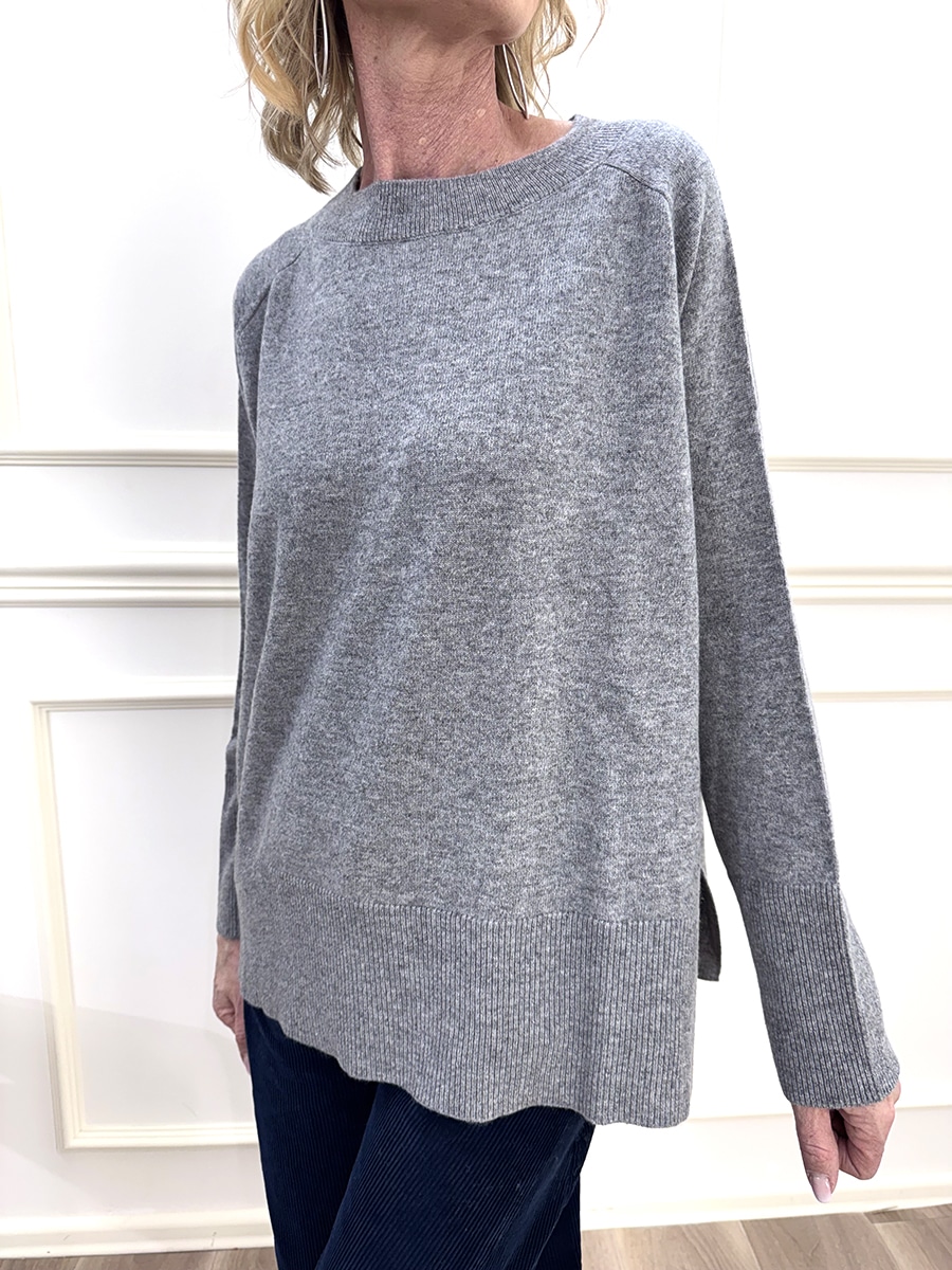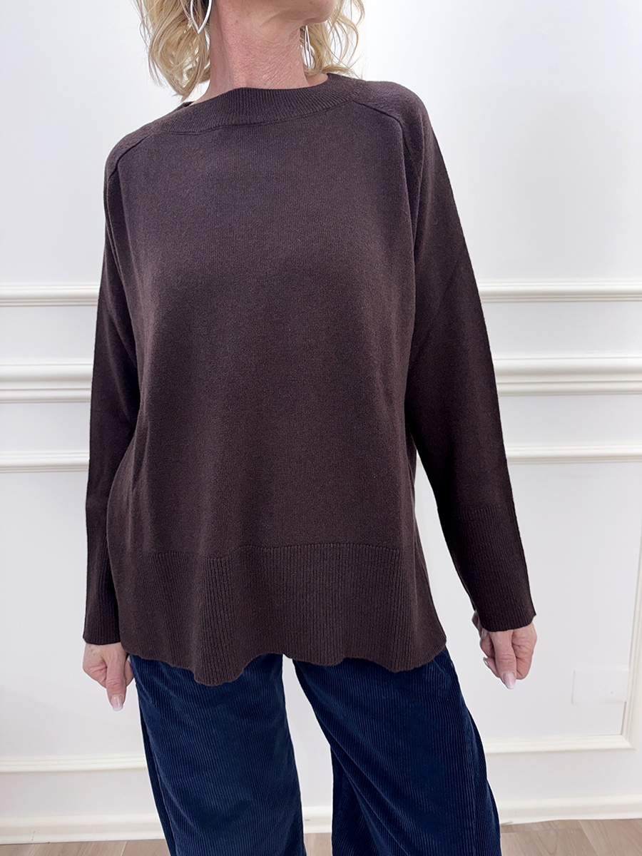 Maglia over girocollo , profili a cotine e spacchetti laterali , vestiblità comoda e linea pulita, texture soffice e calda.