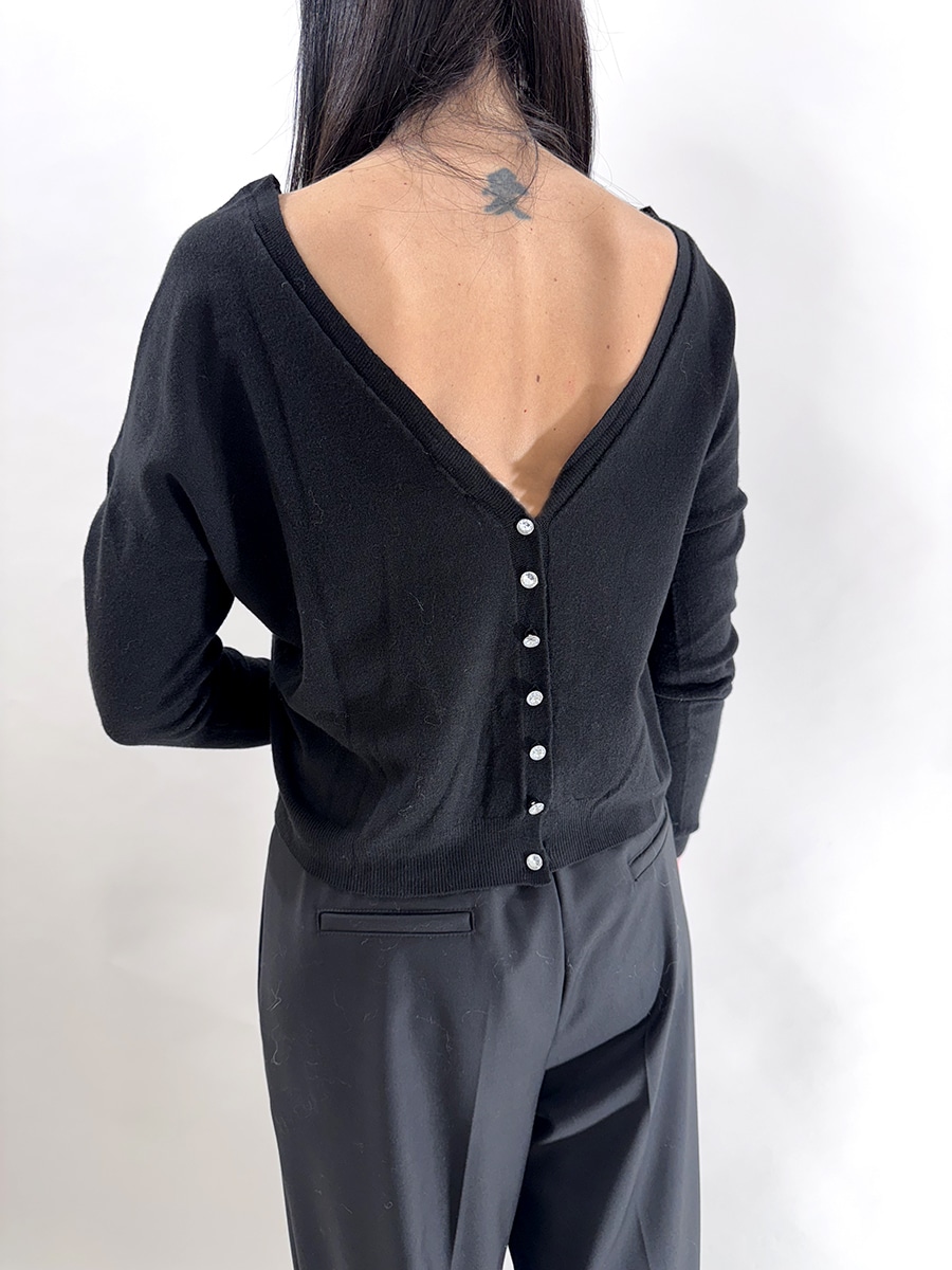 Maglia scollo v sul retro e bottoni gioiello, capo femminile ed elegante con un twist moderno.
