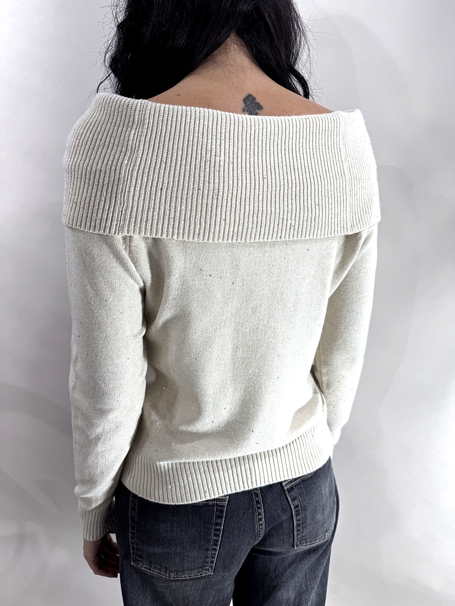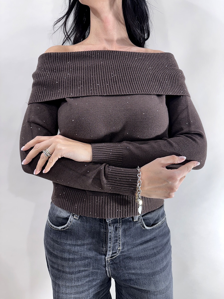 Maglia collo shiffer con micro strass nella trama.