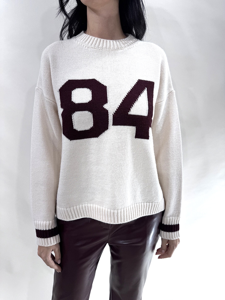 Maglia girocollo con bordi e stampa numero davanti in contrasto. profili canettati. tg unica